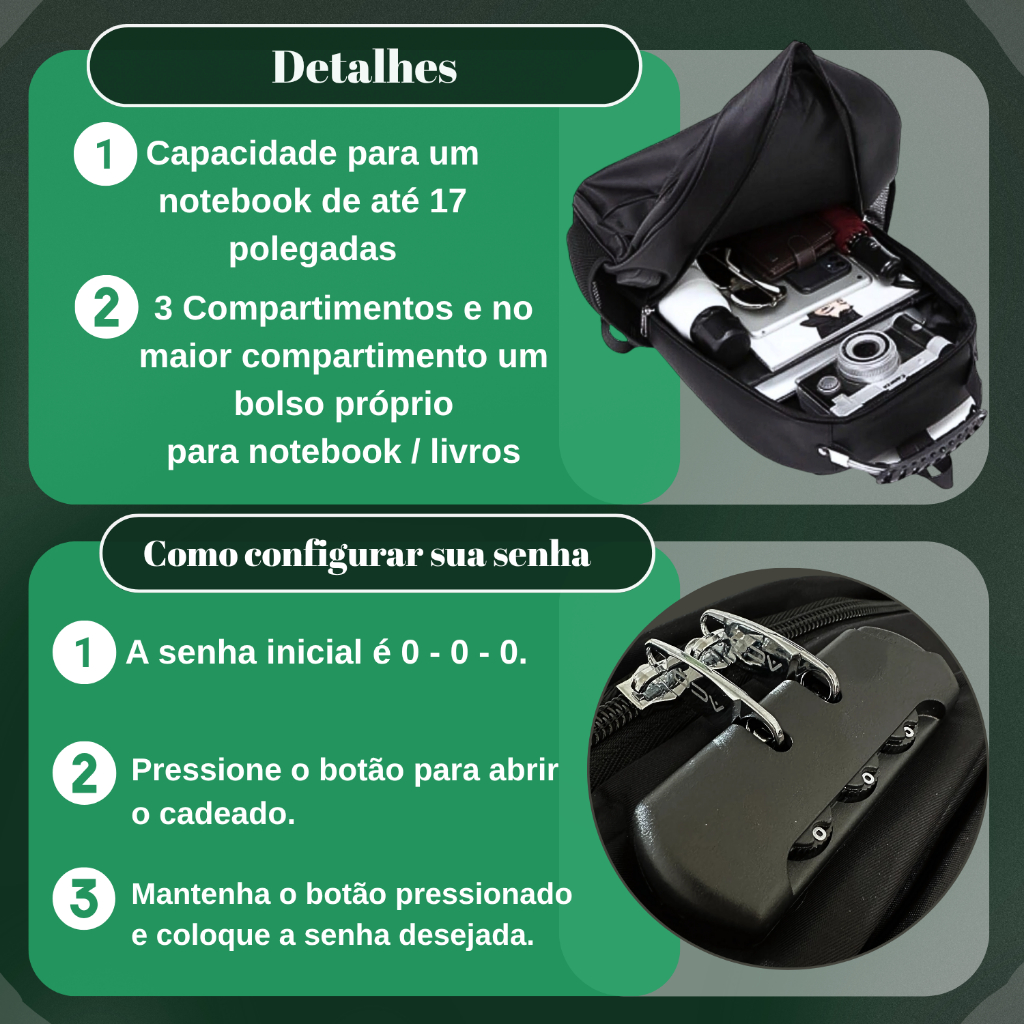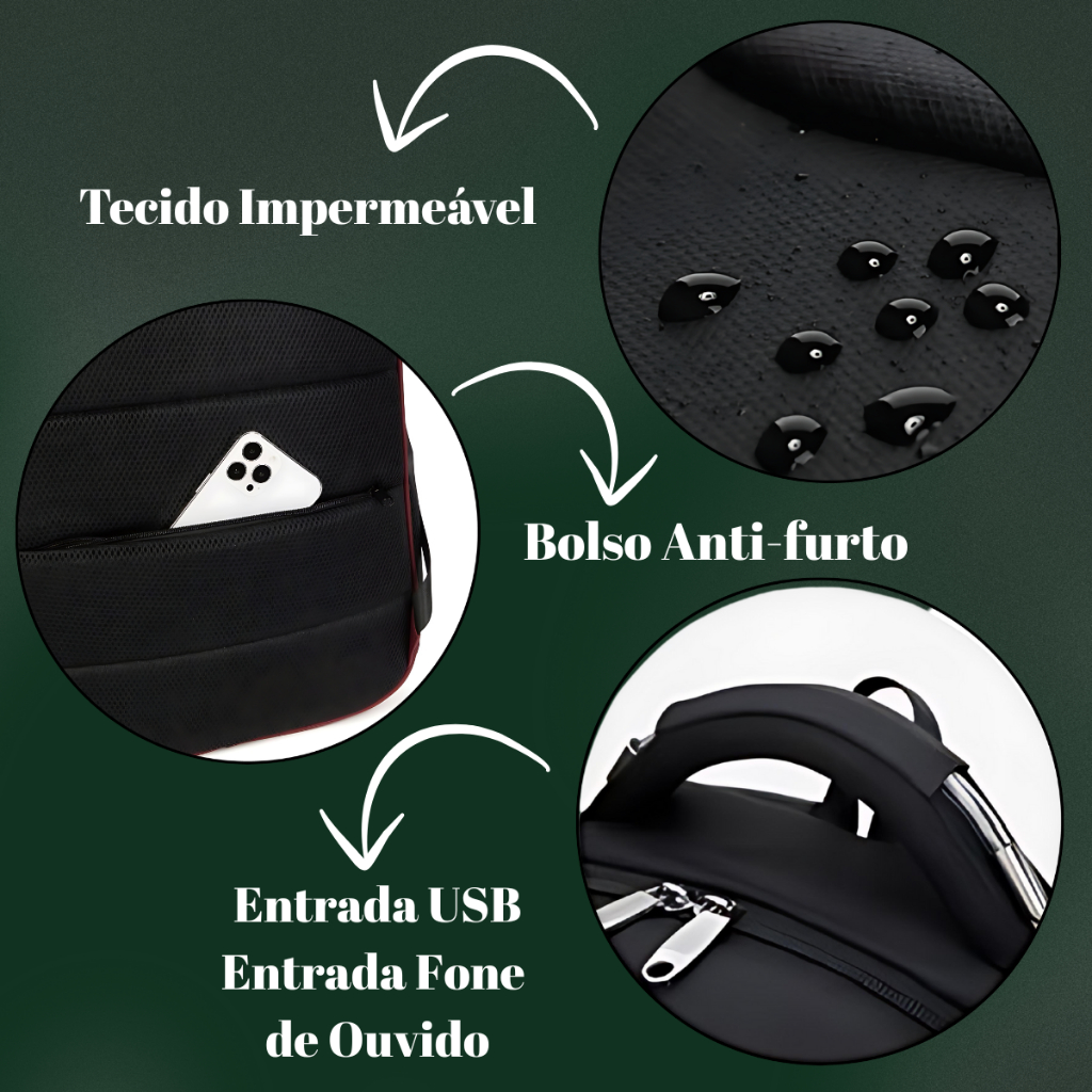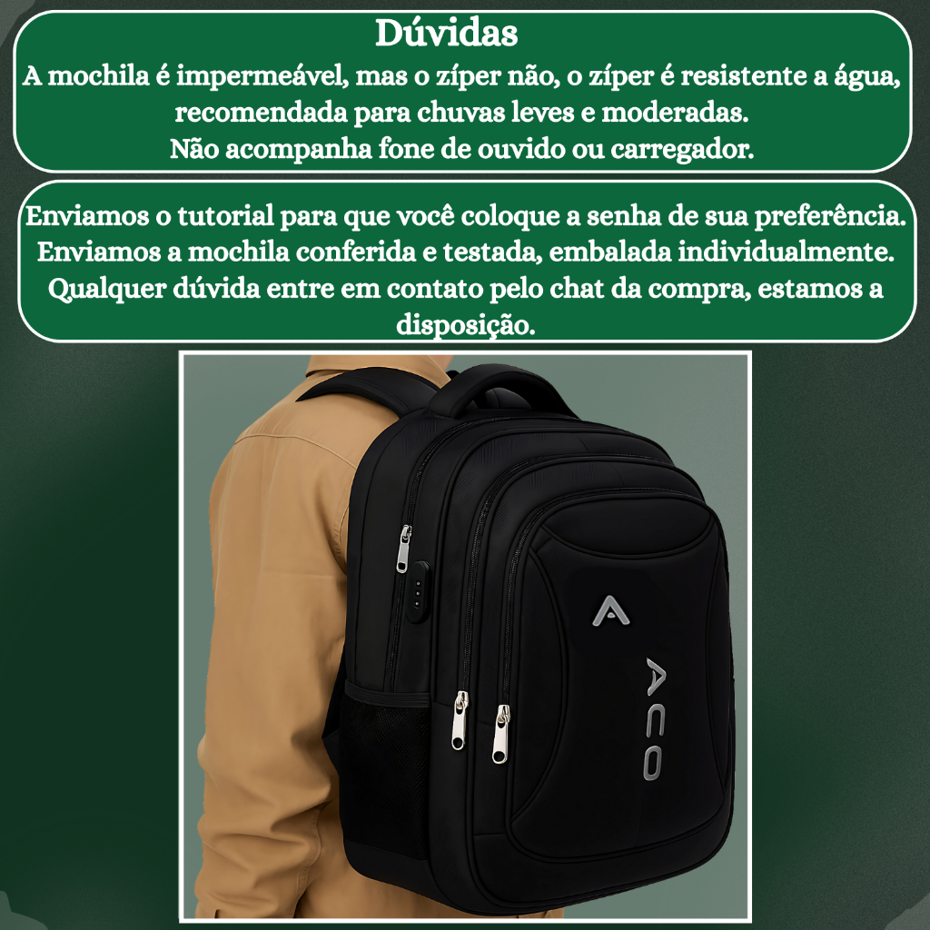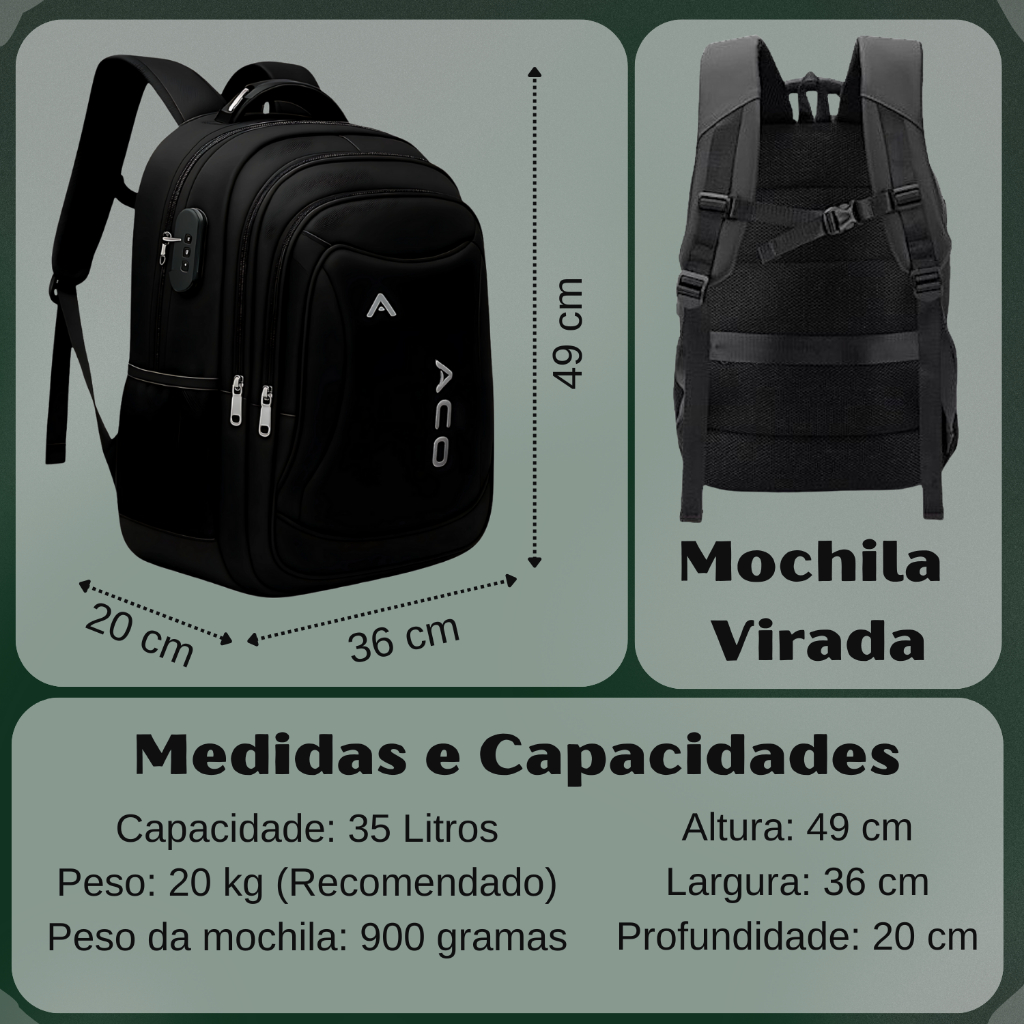 Mochila Notebook c/ Senha E Saida para USB/Fone de Ouvido Masculina Feminina Unissex Impermeável ACO