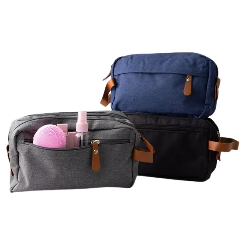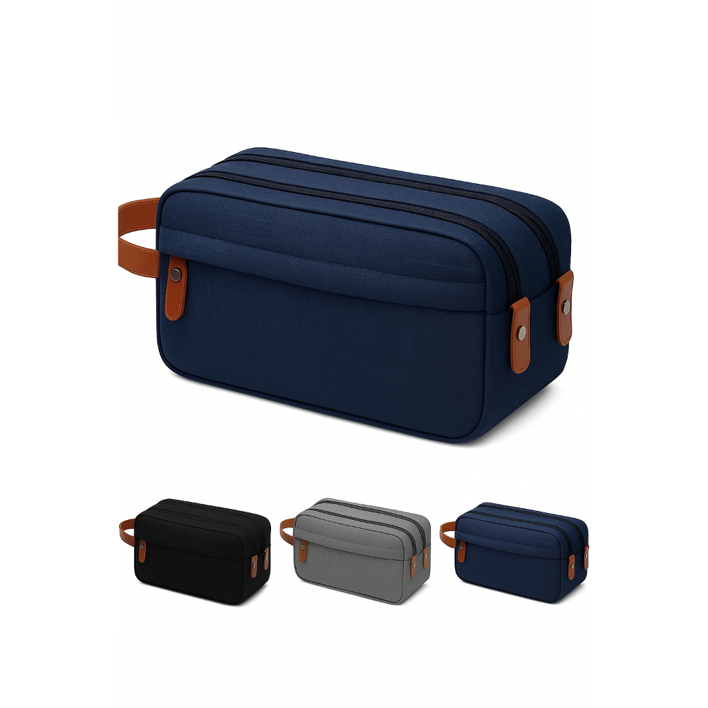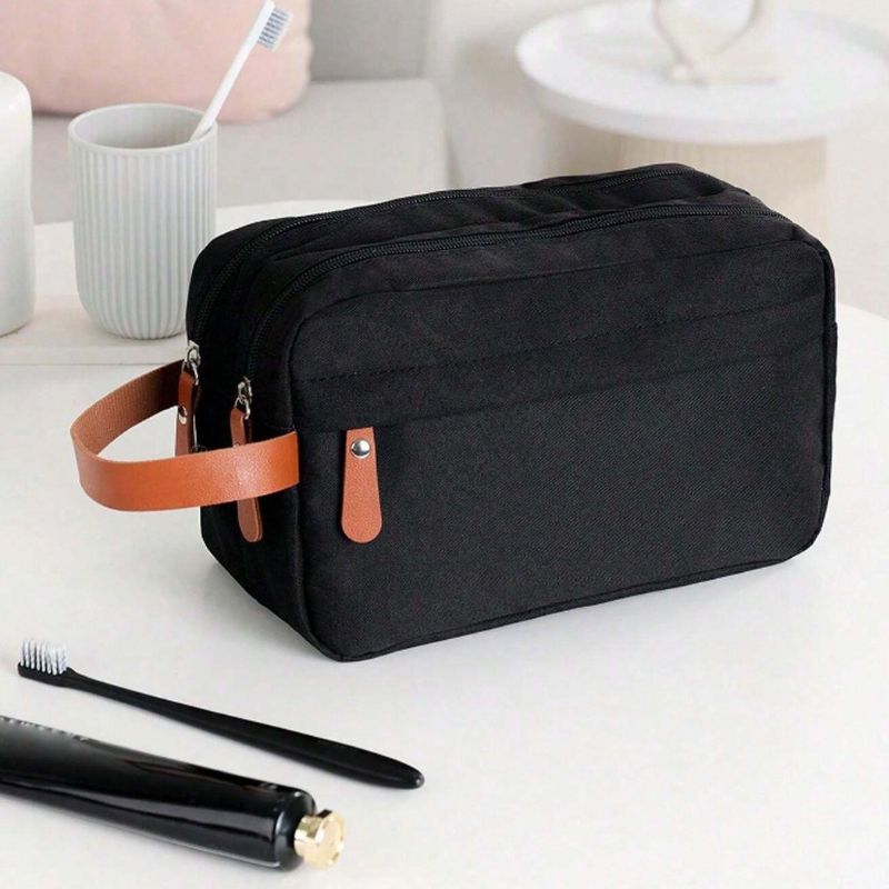 Necessaire Organizador Unissex, Bolsa de Viagem Preta com Alça em Couro, Multicompartimentos