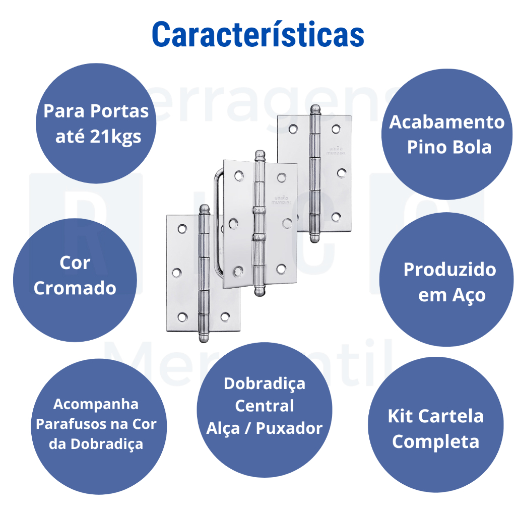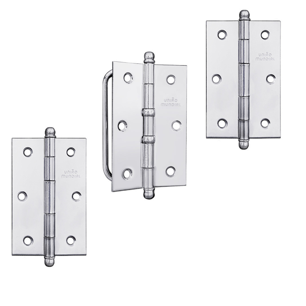 Dobradica Para Porta Janela Camarão Madeira Com Puxador Alça Uniao Mundial Kit Cartela 3,5 x 2 5/16