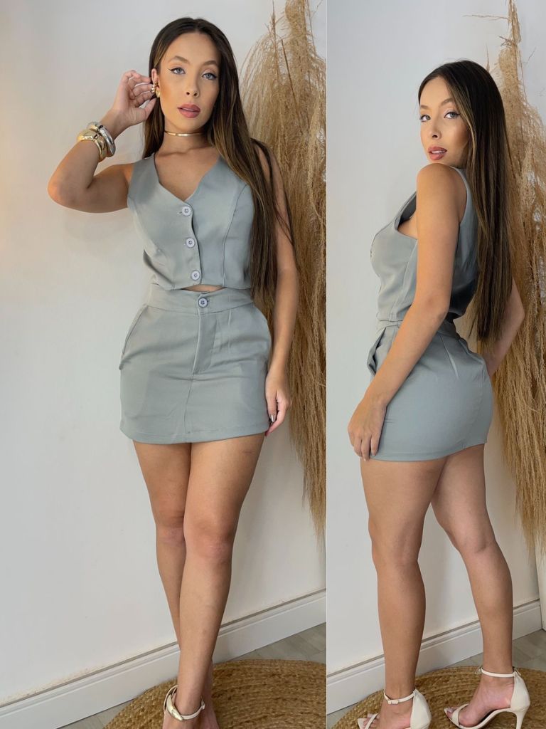 Conjunto Alfaiataria premium Feminino Short Saia Mais Colete Social.