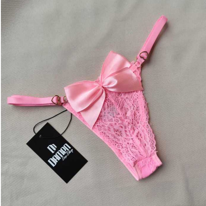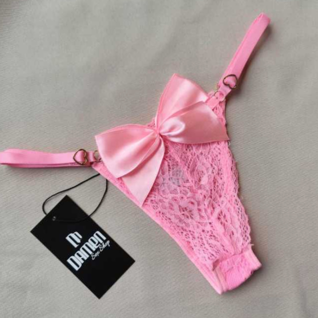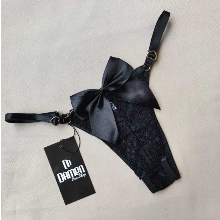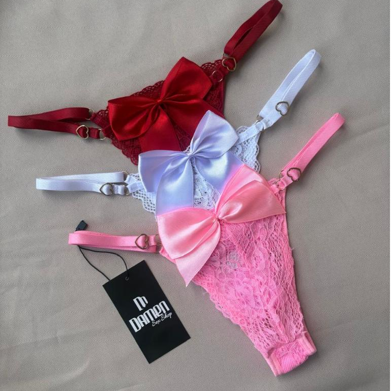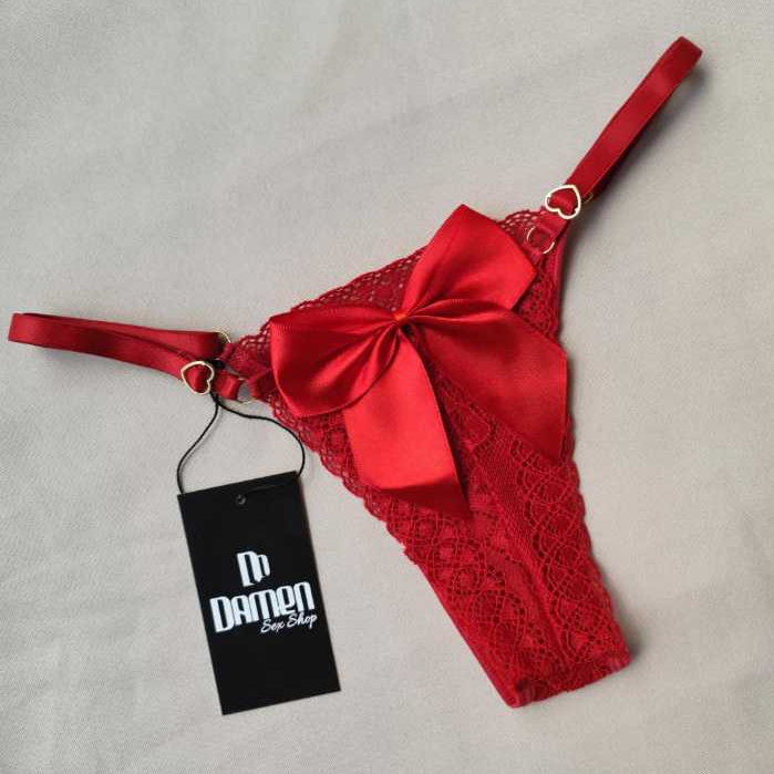 Calcinha Tanga Laçarote rendada com forro algodão lingerie roupa íntima