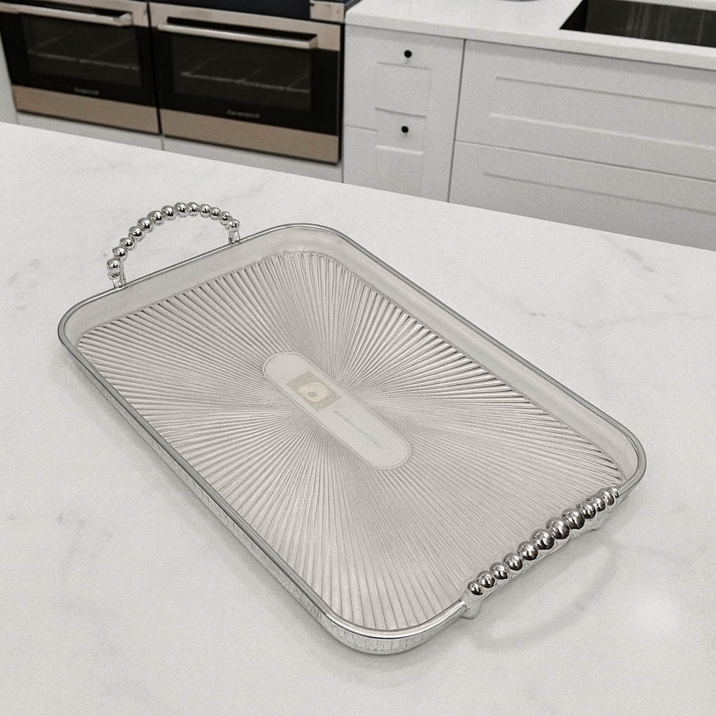 Bandeja Retangular Multiuso Decorativa Luxo com Alças Detalhadas