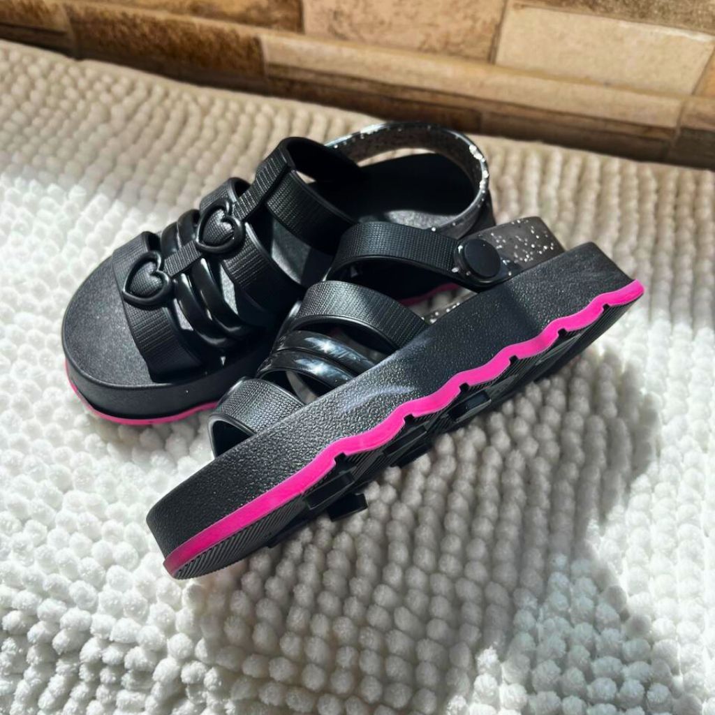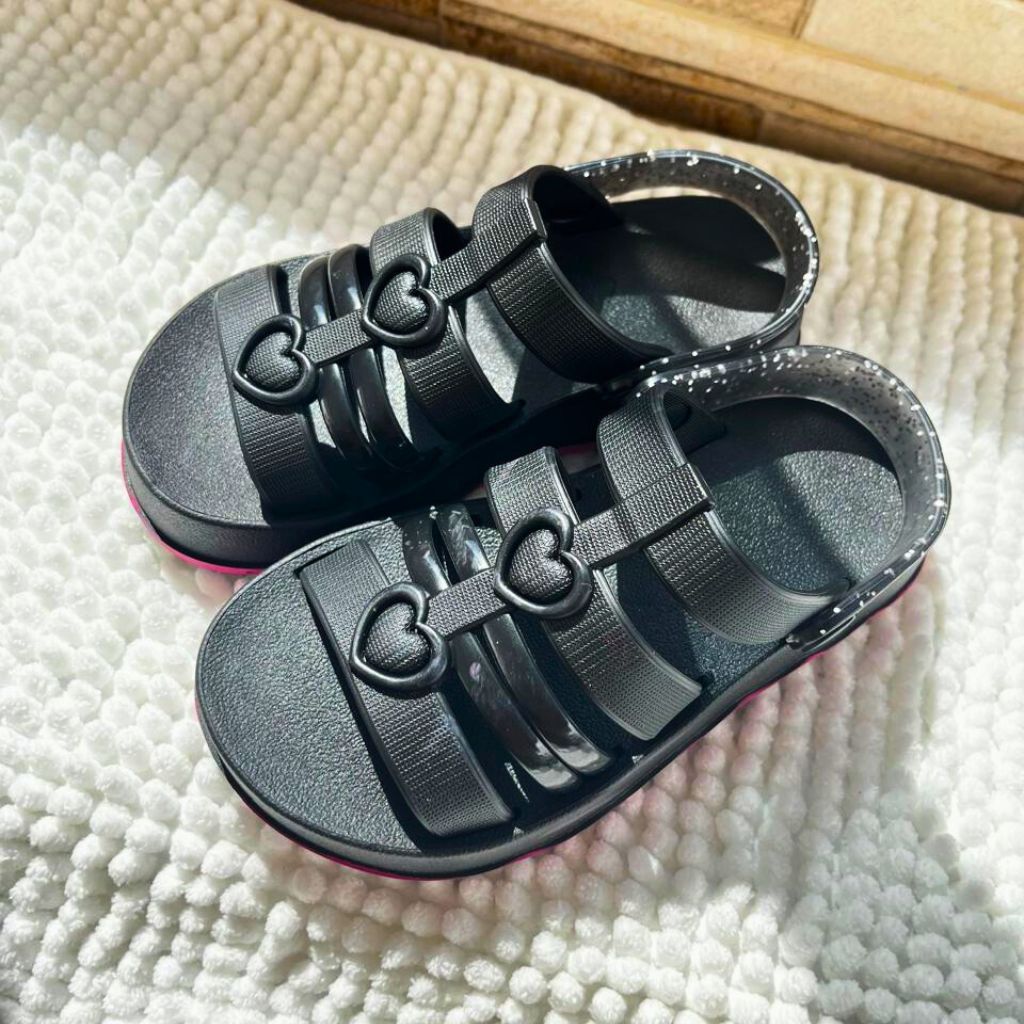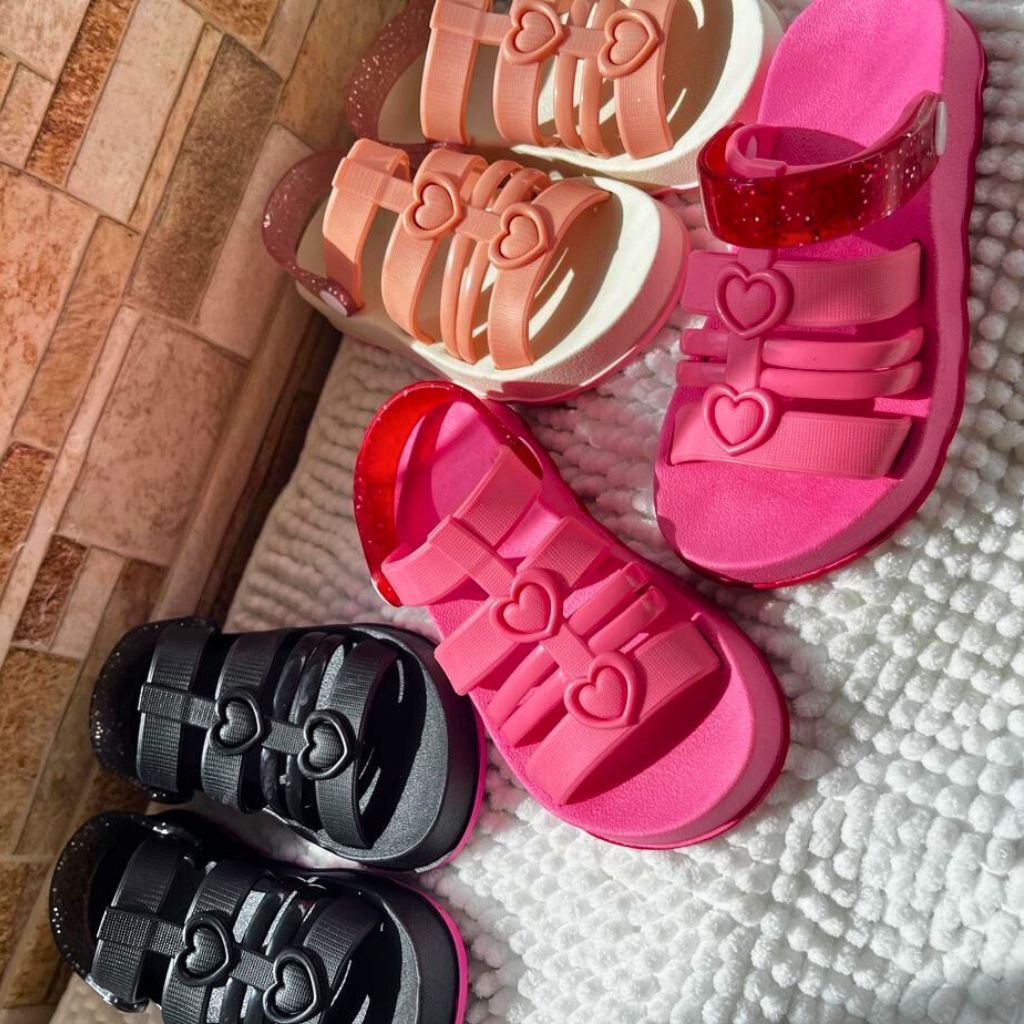 Sandália Infantil Menina Coração | Confortável Antiderrapante | Rosa, Preto e Verde | Tam 18 ao 25 | Pronta Entrega