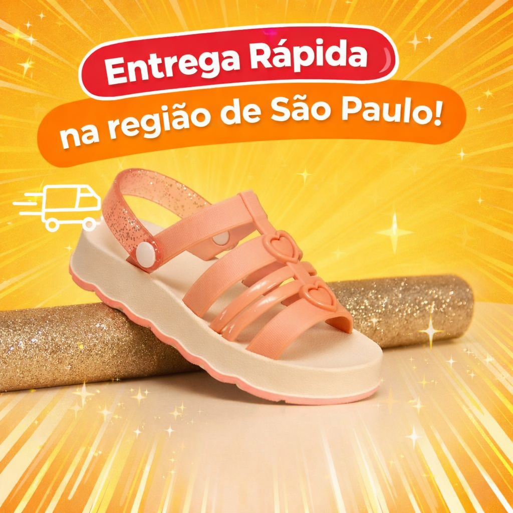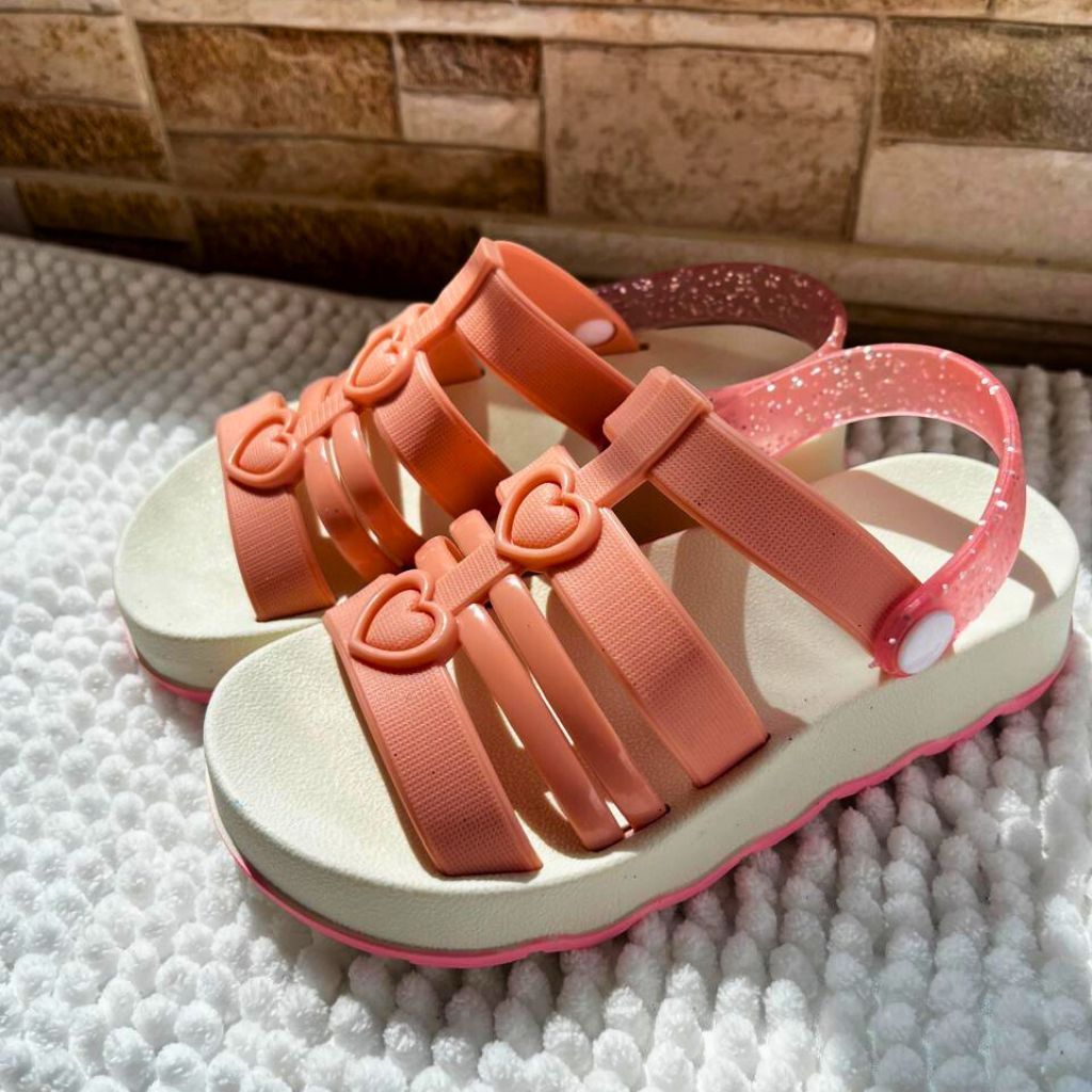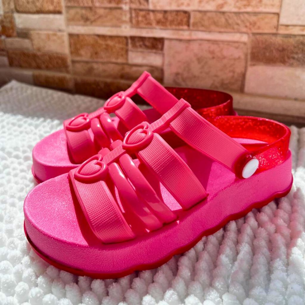 Sandália Infantil Menina Coração | Confortável Antiderrapante | Rosa, Preto e Verde | Tam 18 ao 25 | Pronta Entrega
