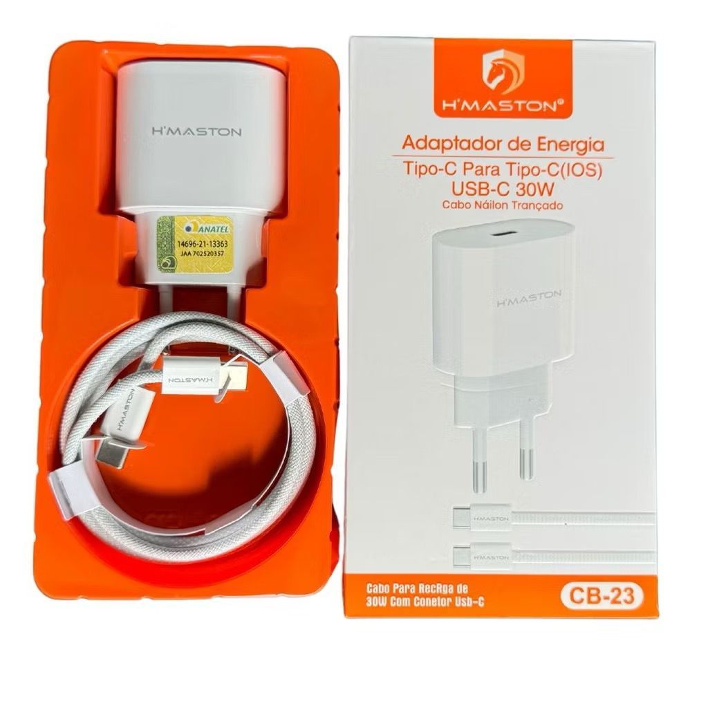 H'Maston CB23 iPhone 15 Iphone 16 Turbo Tipo-C 30W + Cabo Tipo-C para Tipo-C