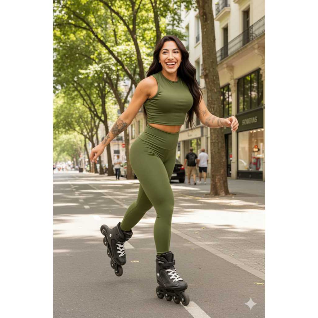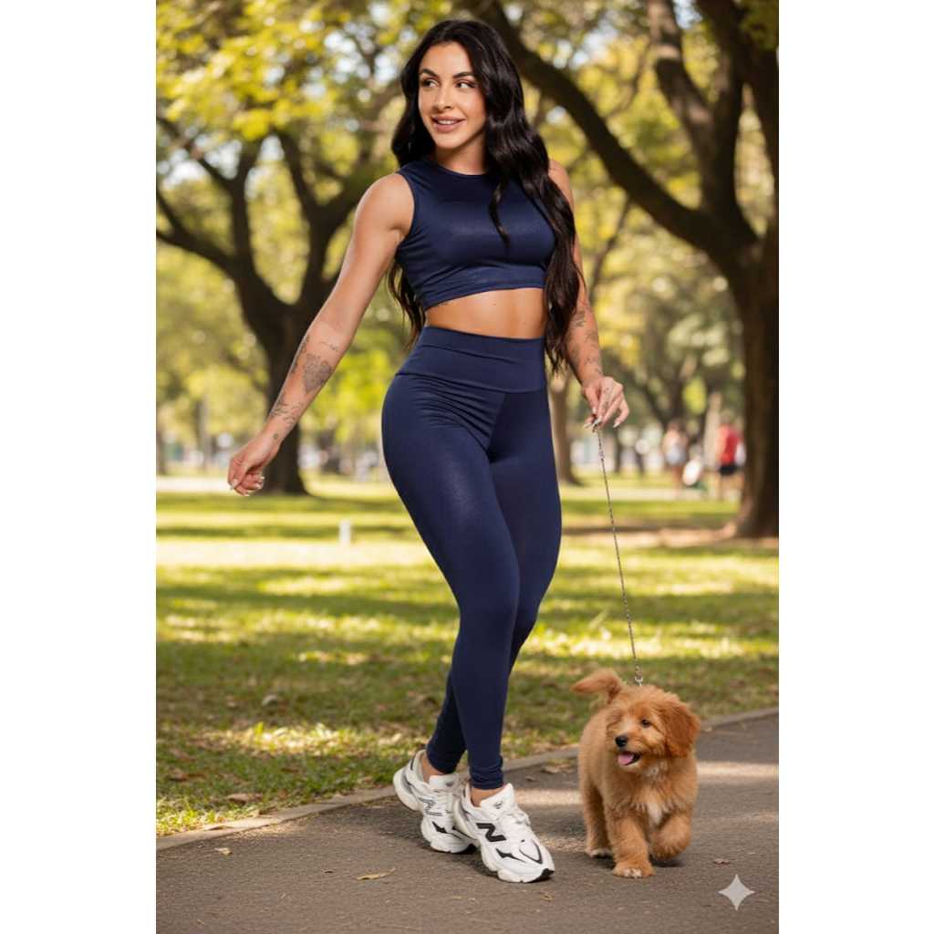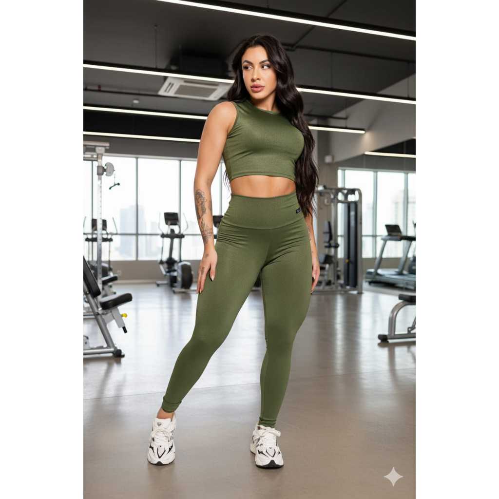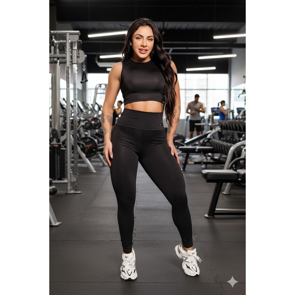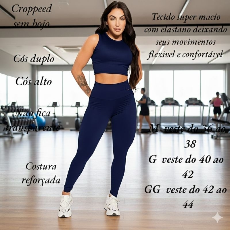 Conjunto Feminino Calça Legging e Top Cropped Academia Fitness Tecido Grosso Premium Zero Transparência.