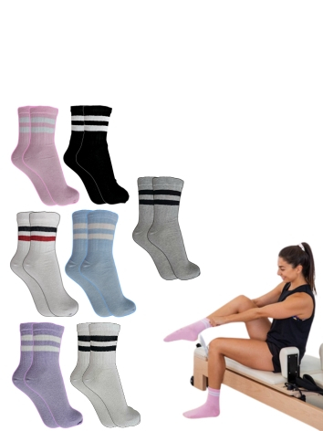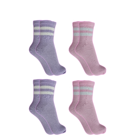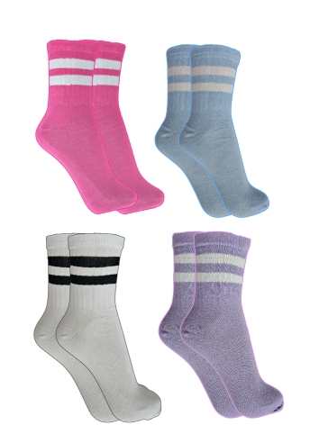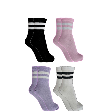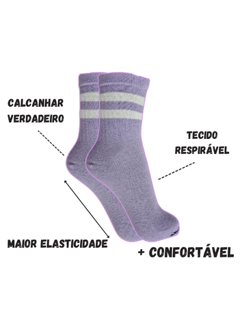 Kit 4 Pares de Meias Aerobica Feminina Com Listras Cano Médio Academia Algodão Corrida Caminhada