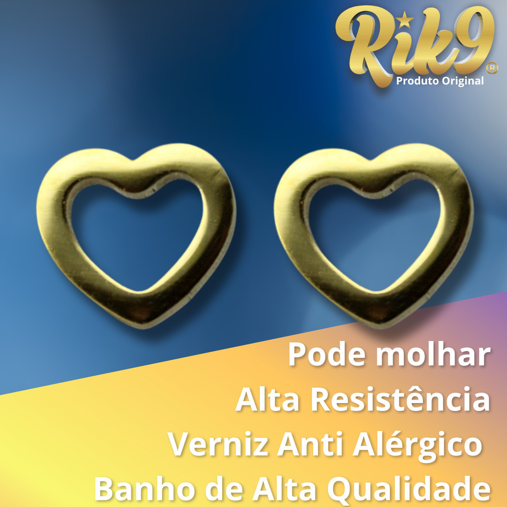 Par Brincos Premium Rik9 Coração Aço Anti Alergico