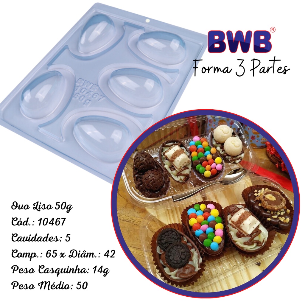 Forma Ovo Páscoa Chocolate 3 Partes Silicone BWB Ovo Páscoa 50/100/150/250/350/500/750g Trufa Bombom