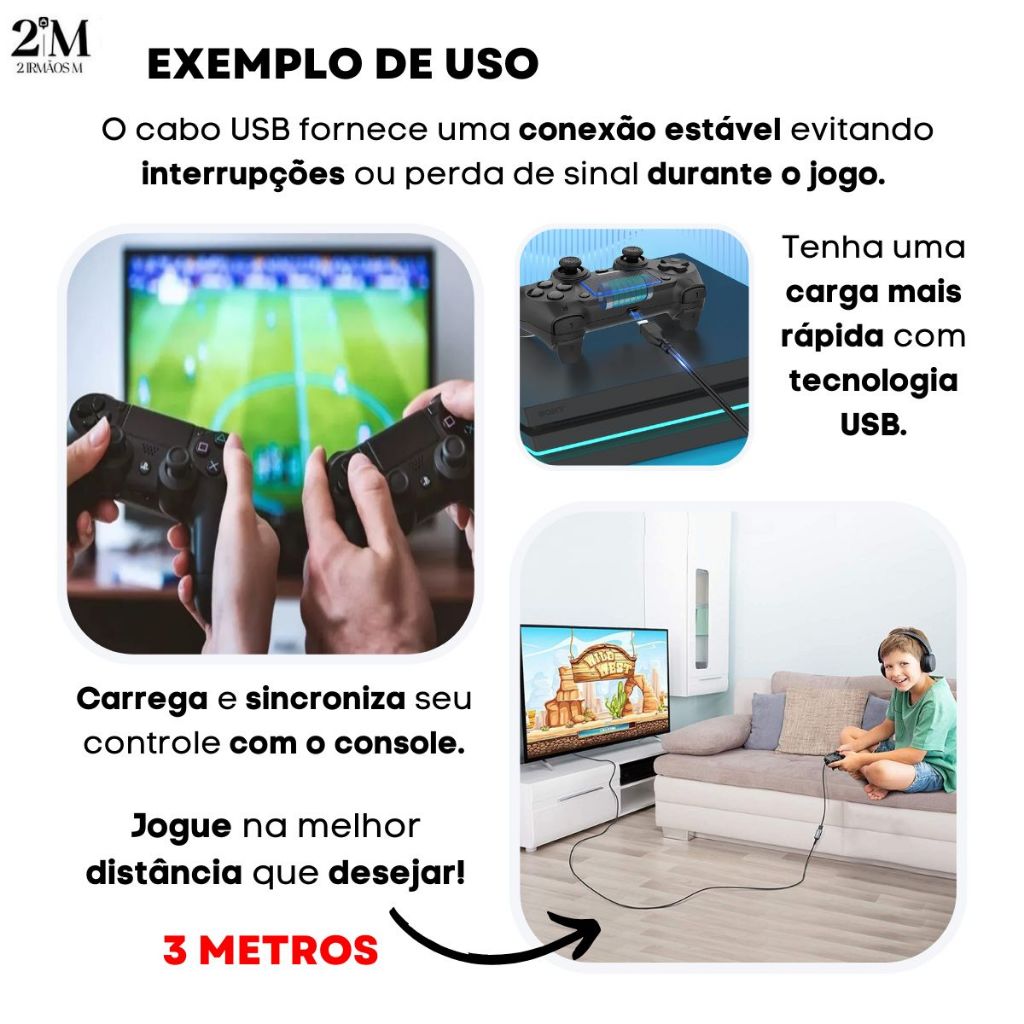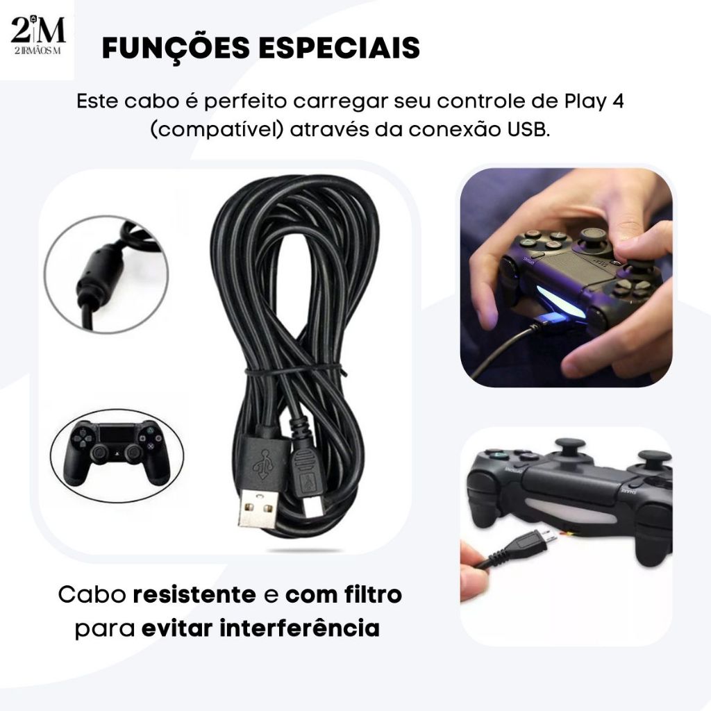 Melhor Cabo Carregador Controle PS4 3m USB Energia Bateria Manete Xbox One V8 Super Turbo Rápido