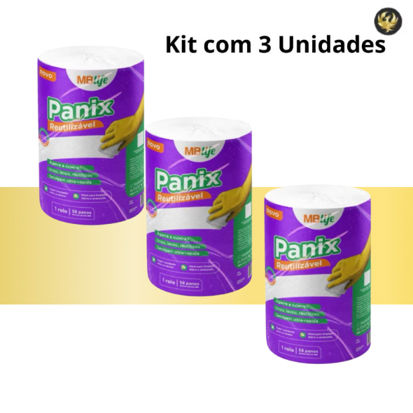 Kit 3 Rolos Panos De Limpeza Rolo Com 58 Toalhas Cada Reutilizavel - 20.5x21.5cm Panix