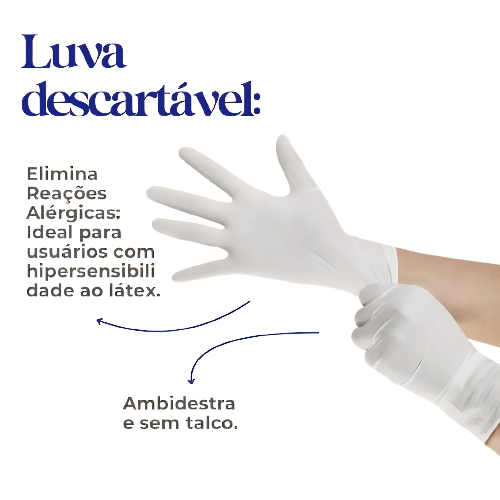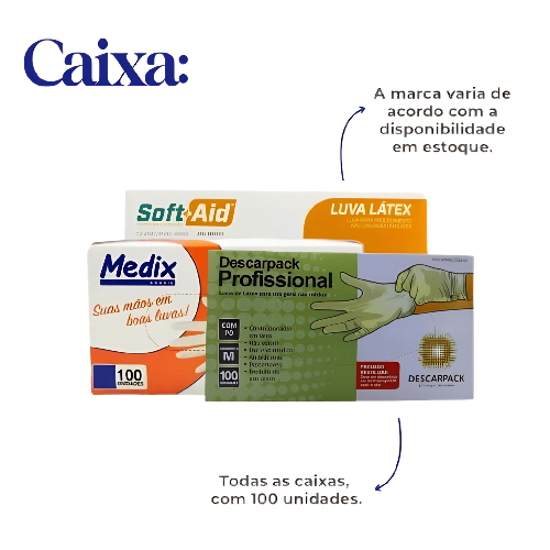 Luva De Látex 100 UN Descartável Com Pó - Tamanho PP, P, M e G