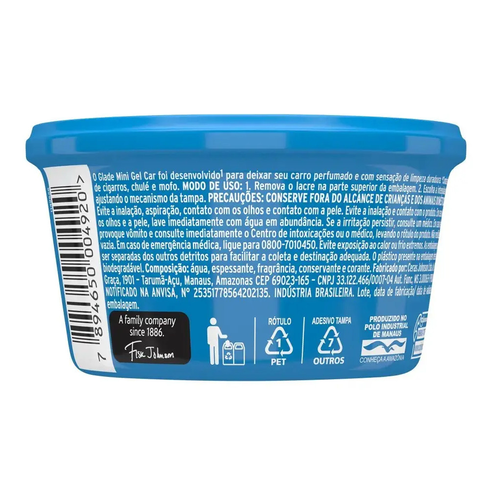 Glade Car Aromatizador de Carro Veiculo Cheirinho Odorizador Acqua 70g