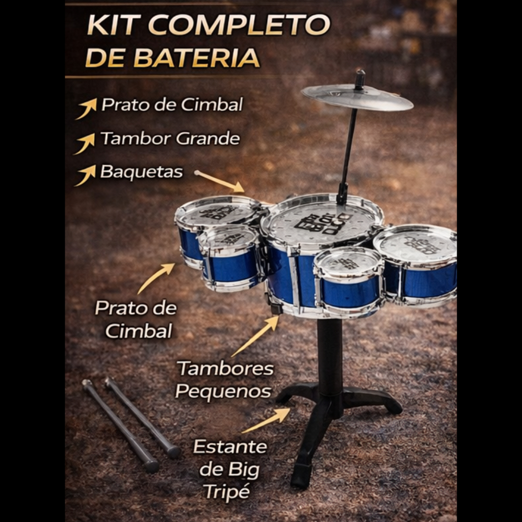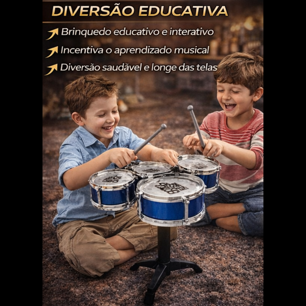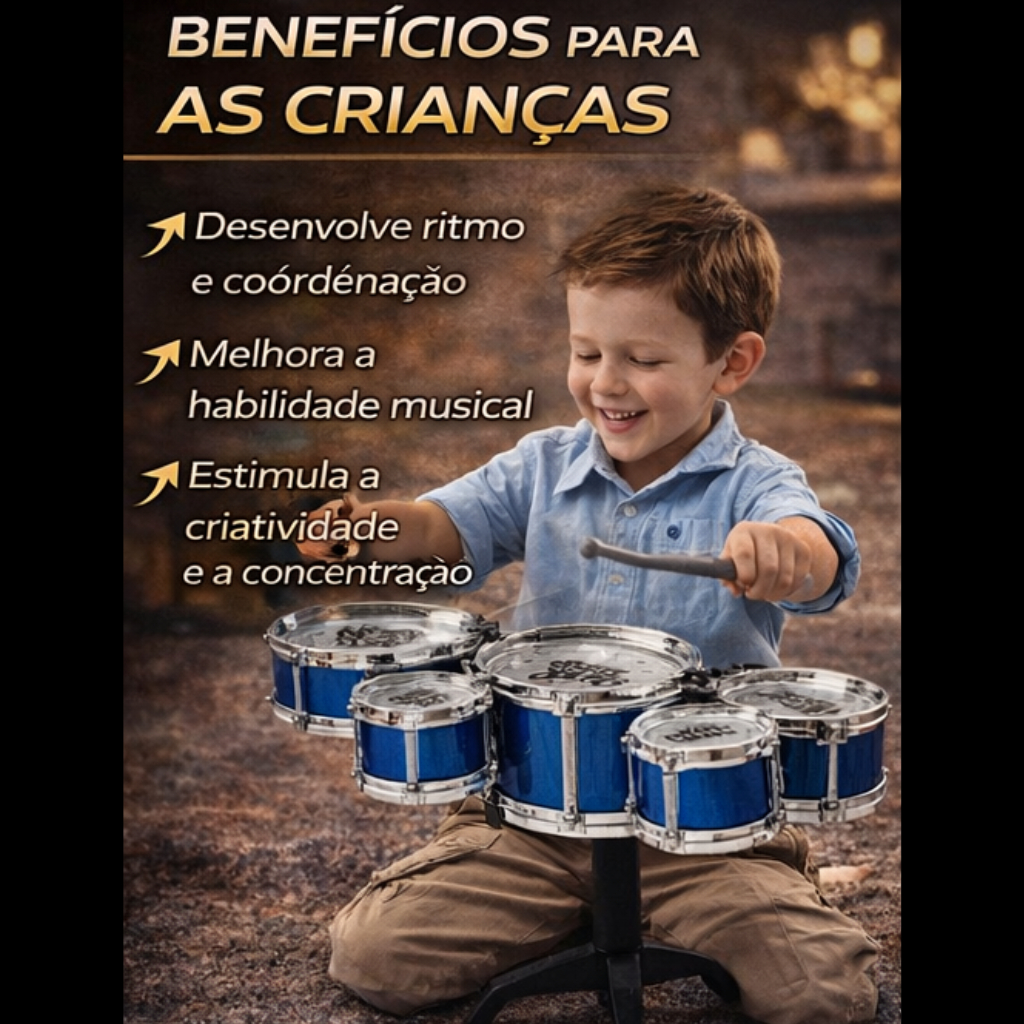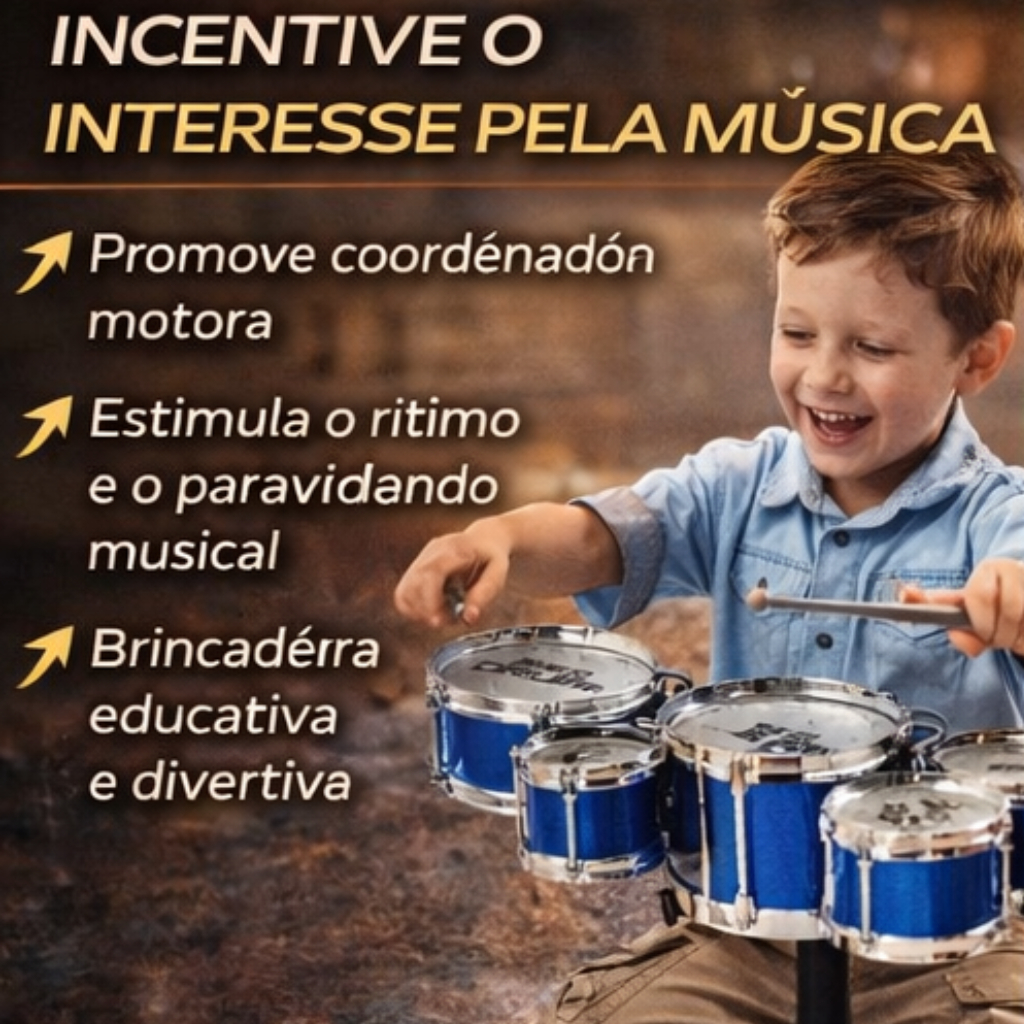 Mini Bateria Musical para Crianças - Brinquedo Educativo com Sons Reais