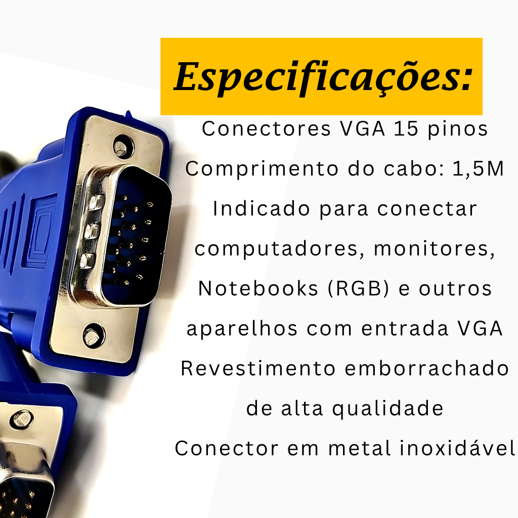 Cabo Vga Monitor Projetor Lcd Pc Tv 1,5 a 15 Metros