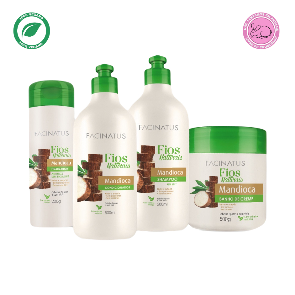 KIT CAPILAR MANDIOCA FIOS NATURAIS FACINATUS - 4 ITENS