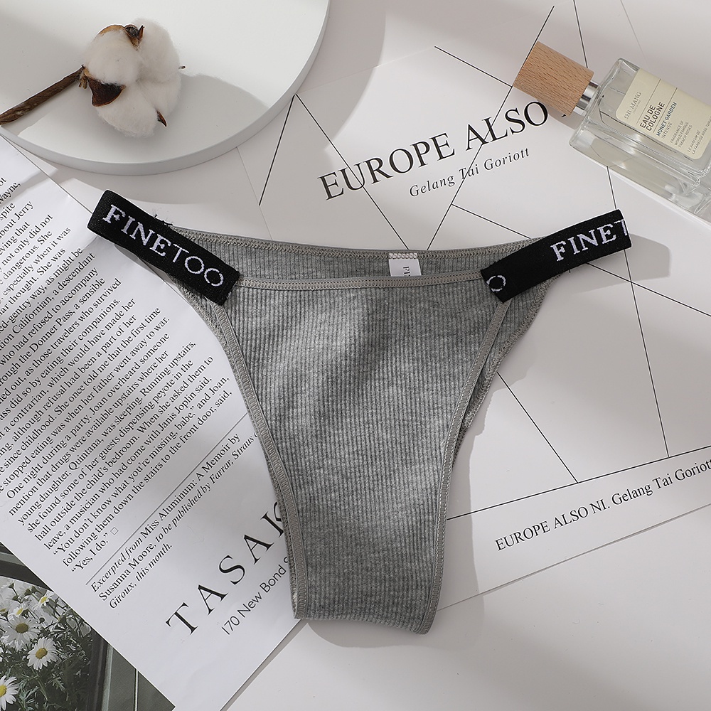 FINETOO Calcinha/Roupa Íntima Feminina Sexy De Algodão Com Palavra Cruzada/Fio Dental Femme