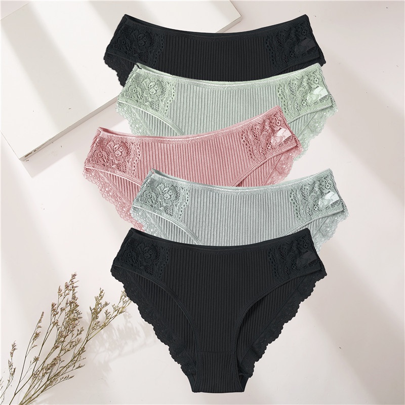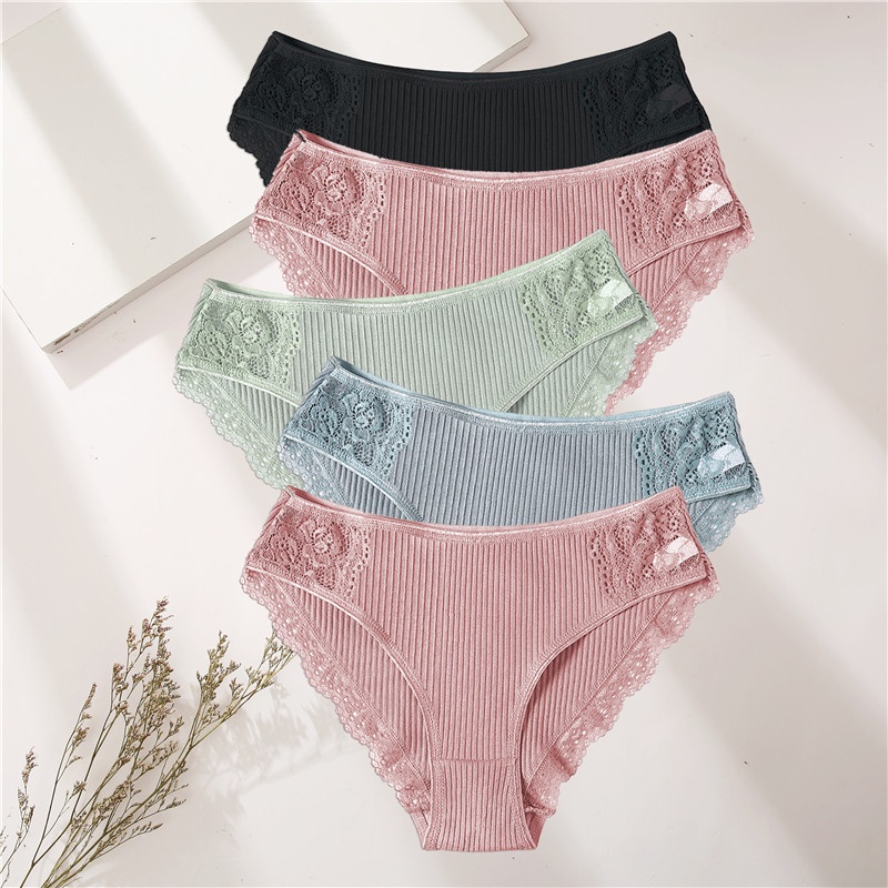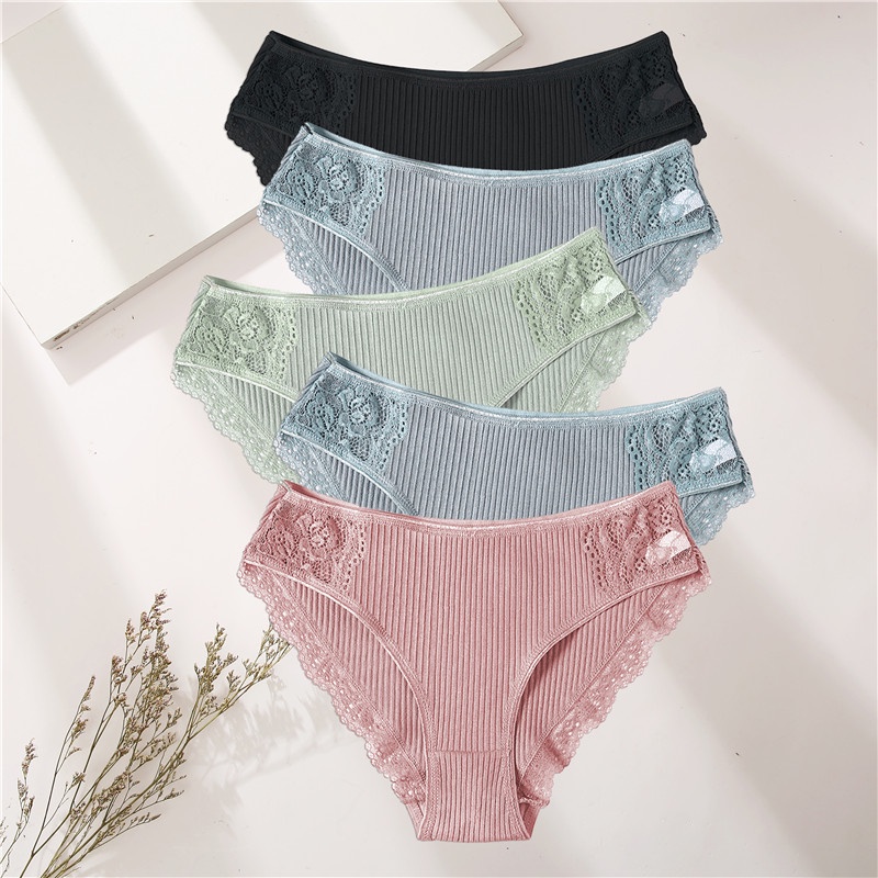 FINETOO 5PCS/Conjunto Roupa Íntima Feminina De Algodão