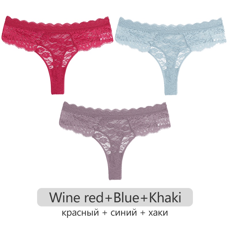 FINETOO 3Pcs/Conjunto Tangas De Renda S-XL Sexy Fio-Dental Calcinha Floral De Cintura Baixa Feminina Lingerie