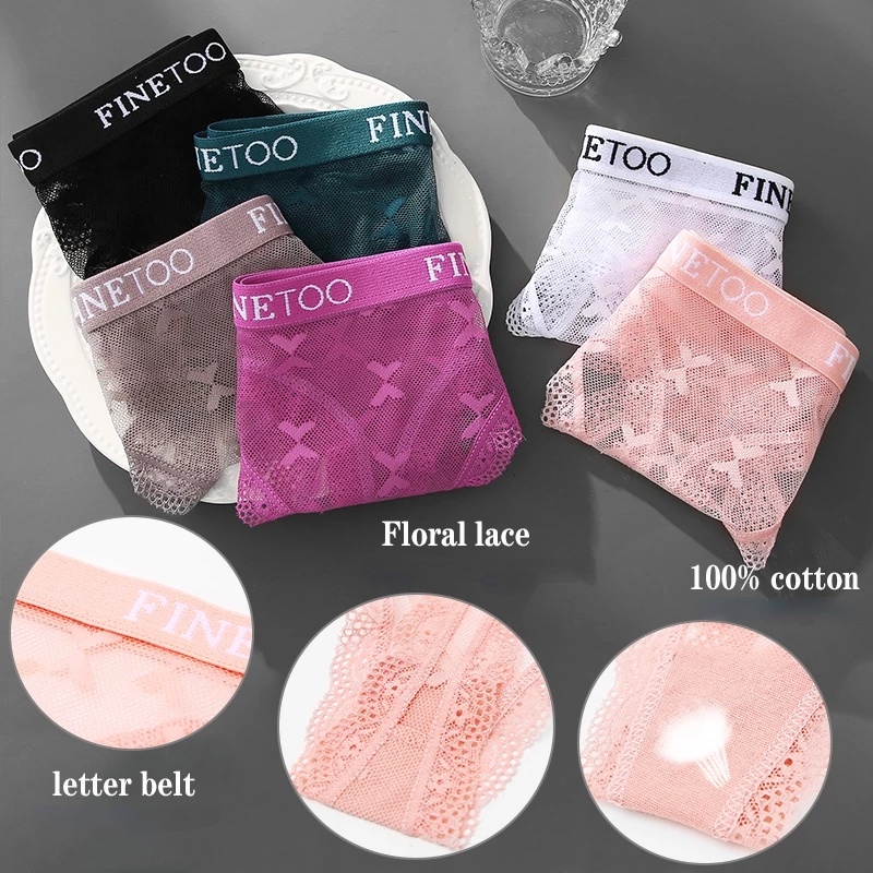 FINETOO 4pçs/Conjunto Calcinha Fio Dental De Renda Floral Feminina