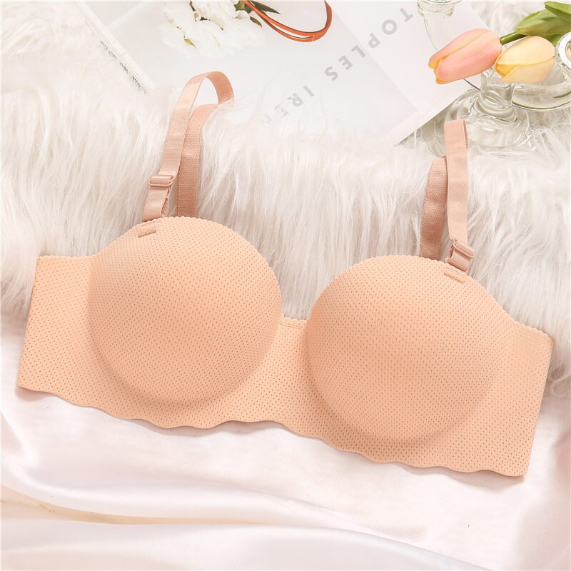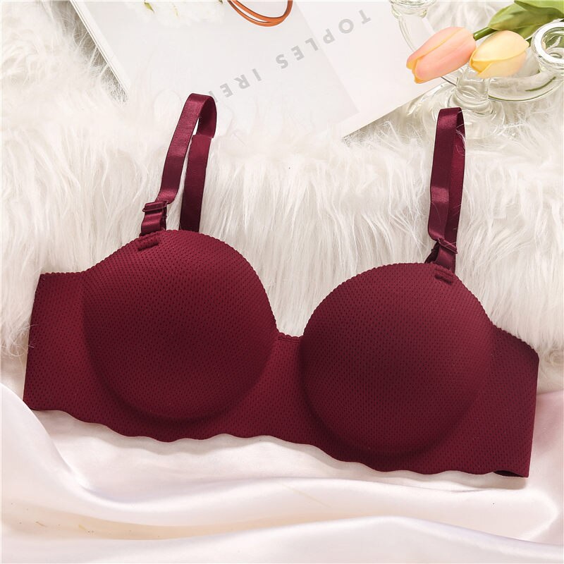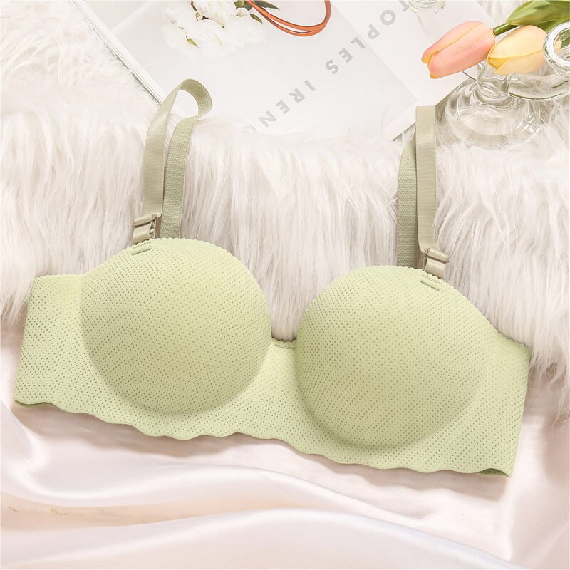 FINETOO Mulher Sutiã Reforçado Lingerie Feminina Sem Costura Cor Sólida Bralette Invisível Correia Removível