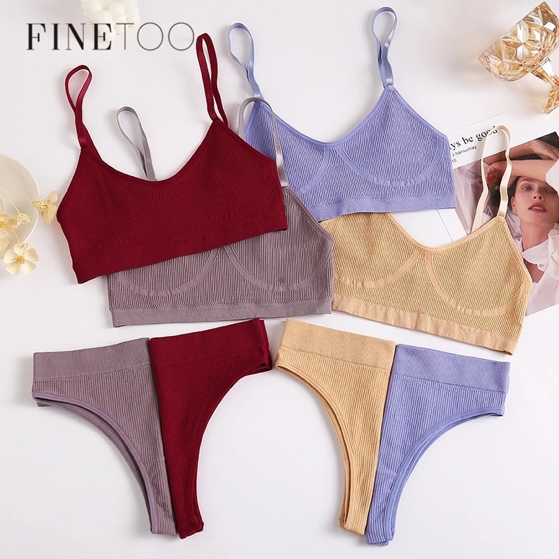 FINETOO Conjunto De Roupa Íntima Feminina De Cintura Baixa Macia Lingerie Fitness Crop Top