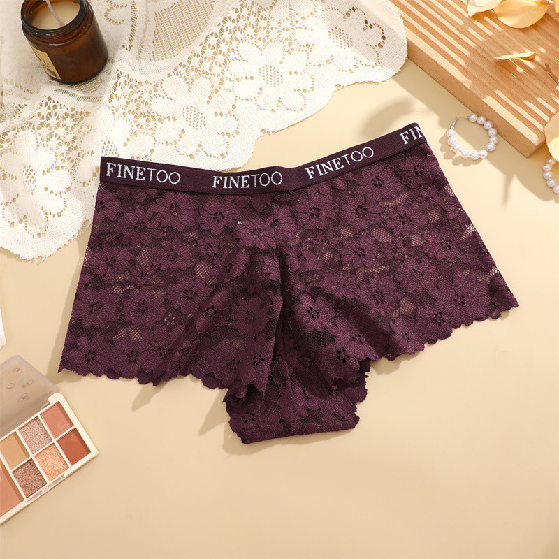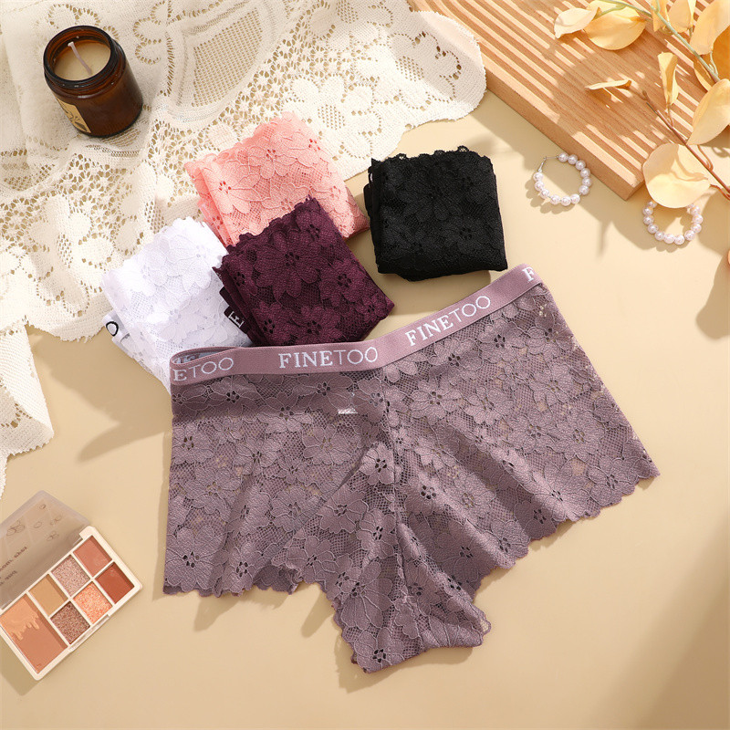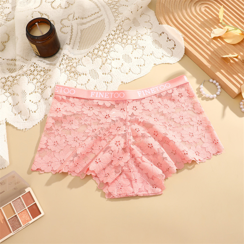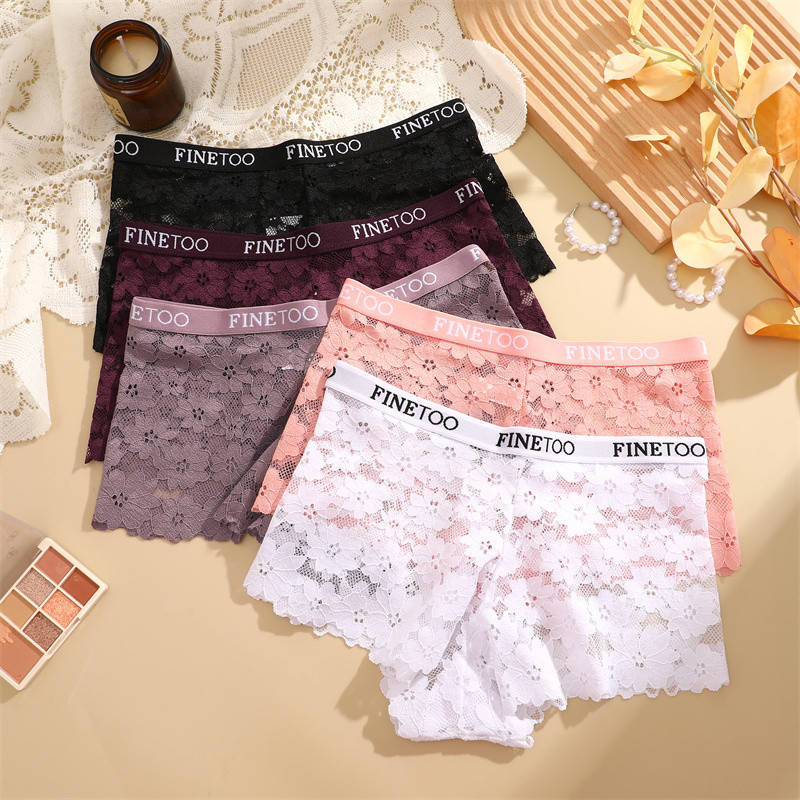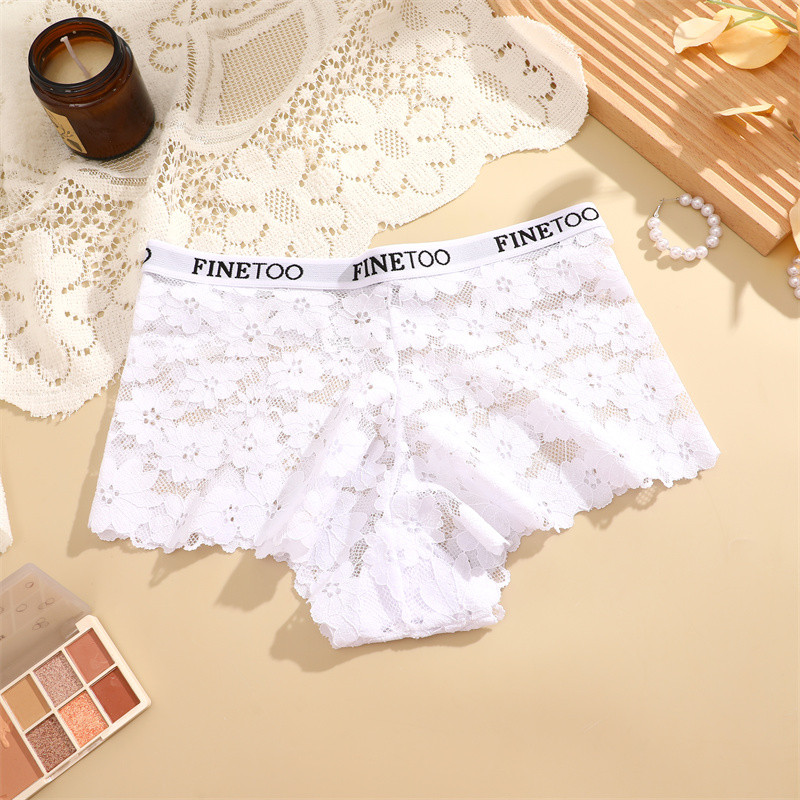 FINETOO Shorts Boxer De Renda Para Mulheres Calcinha Estampada Cinto Sexy Lingerie De Algodão