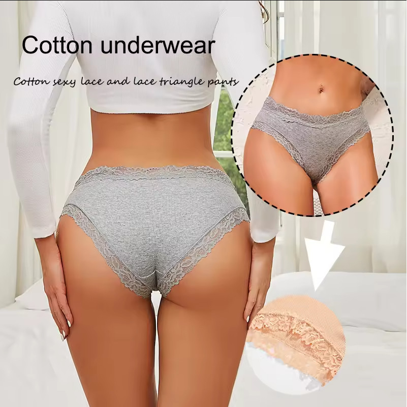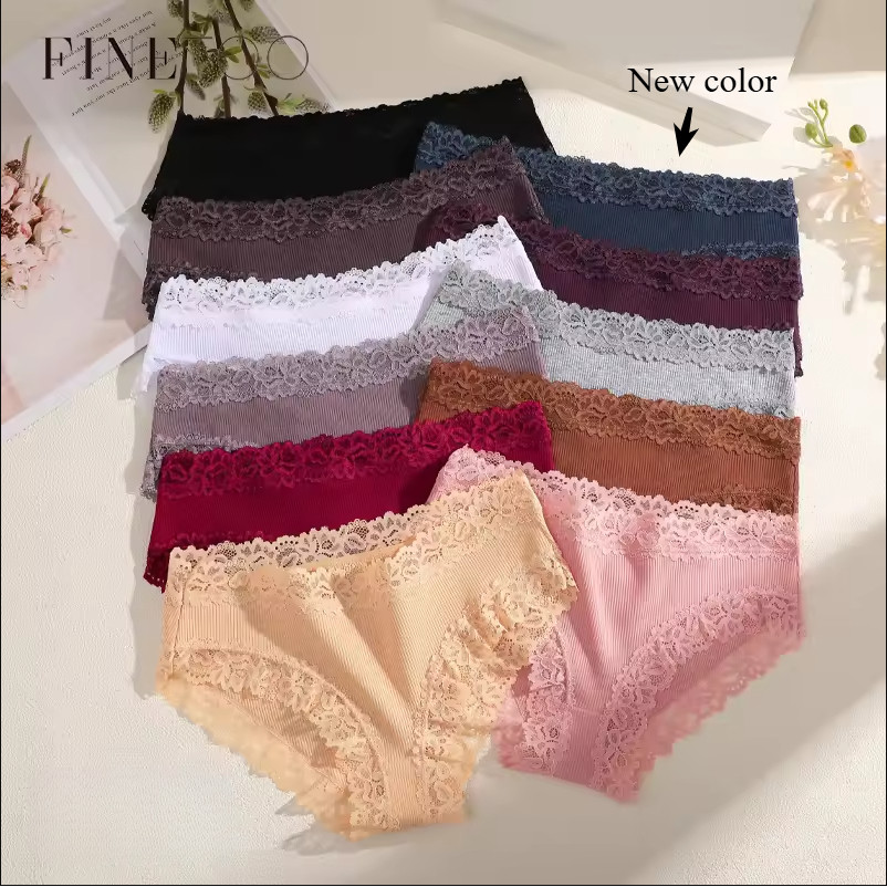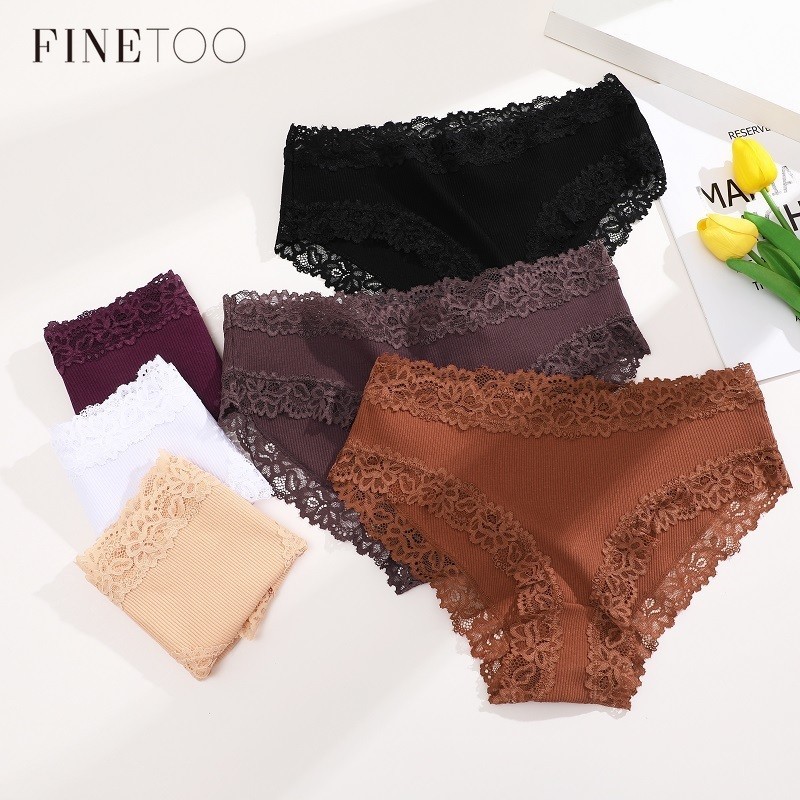 FINETOO Calcinha De Renda Para Mulher Cuecas Confortáveis Lingerie Respirável Sexy Roupa Íntima De Cintura Média