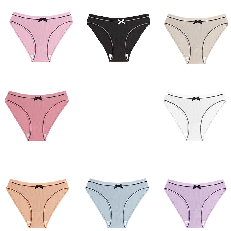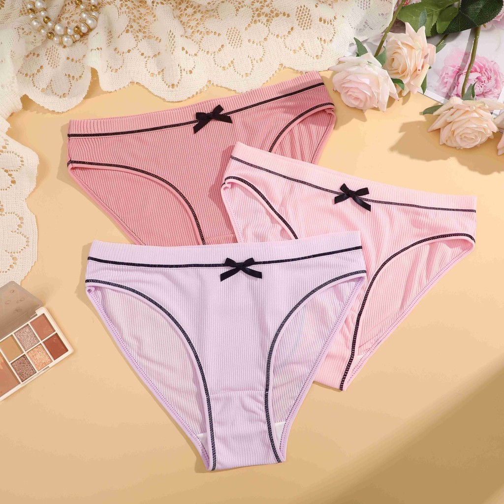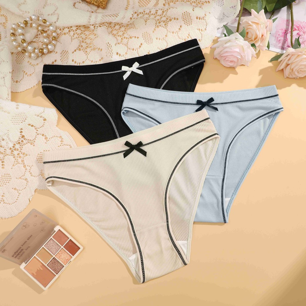 FINETOO Calcinha De Algodão Para Mulheres Com Laço , Roupa Íntima Respirável E Confortável , Feminina Fofa