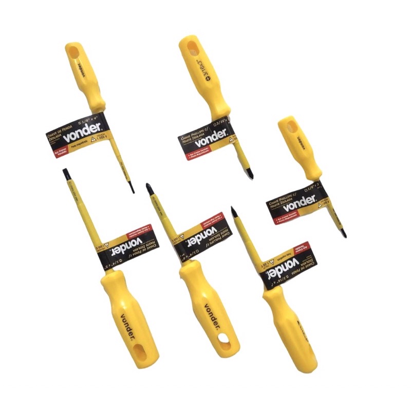 Conjunto Chaves Fenda Phillips Isolada Ponta Magnetizada Vonder 6PÇ