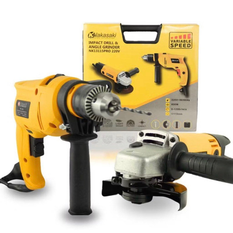 Kit Esmerilhadeira Angular Lixadeira + Furadeira Impacto 13mm Nakasaki 900w - Qualidade