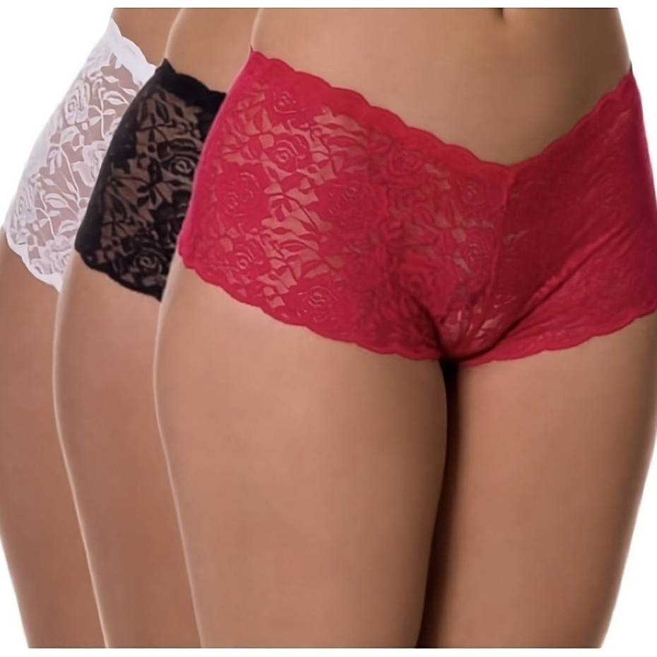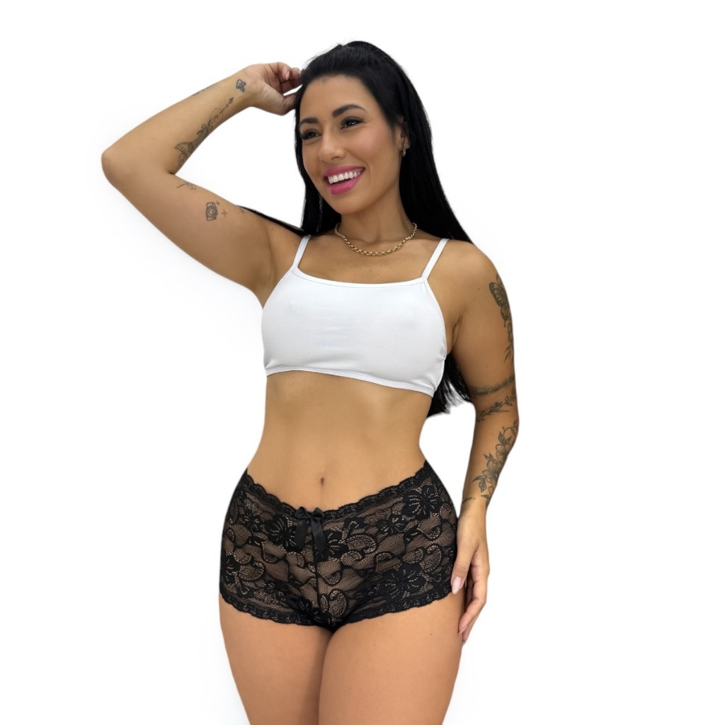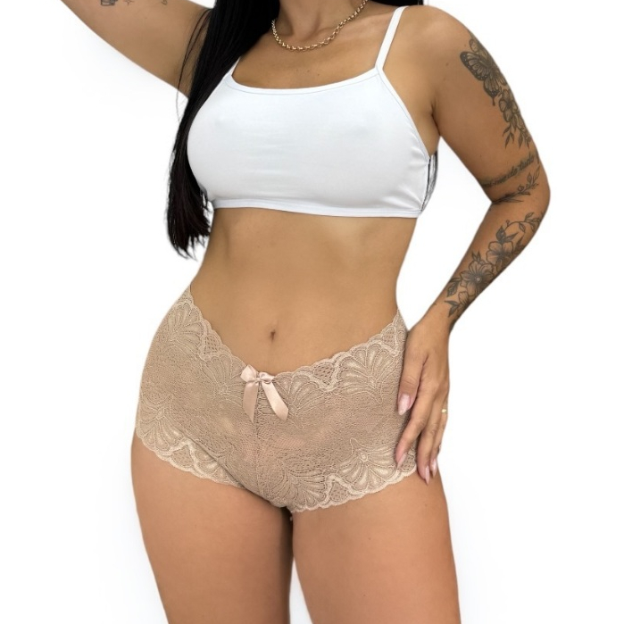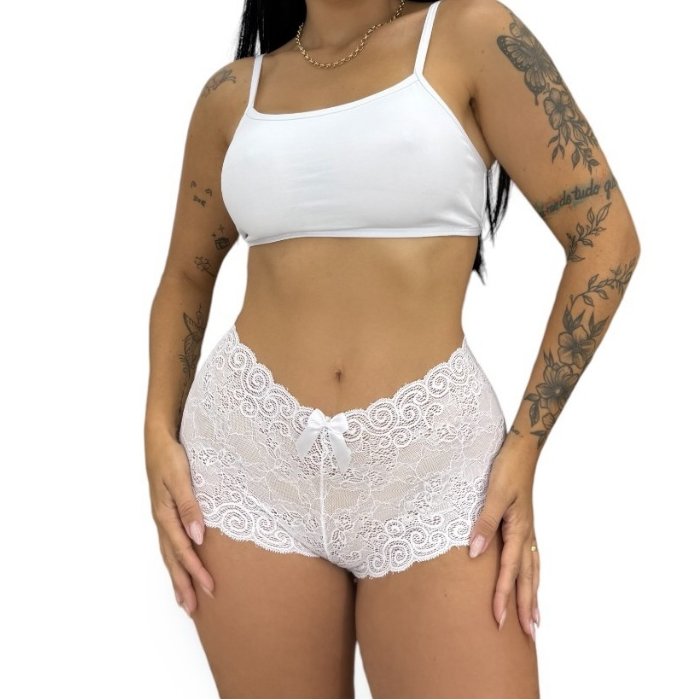 Kit 1 à 3 Calcinha de Renda Estilo Shortinho 1 Laço Lisa Lingerie Feminina Confortável Edumara
