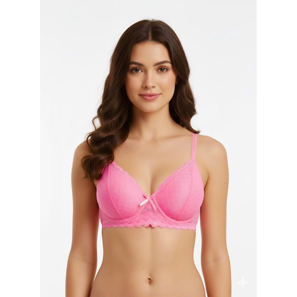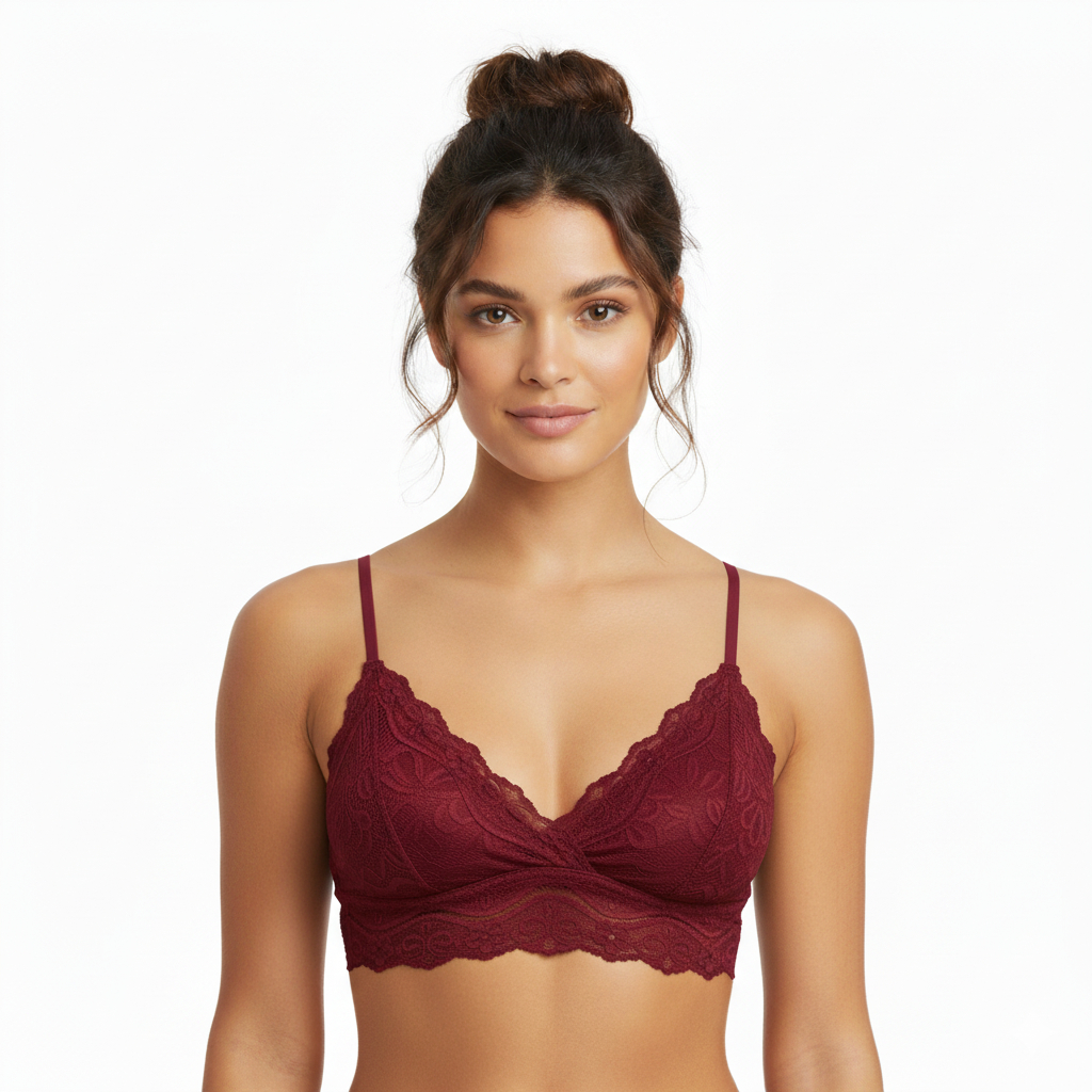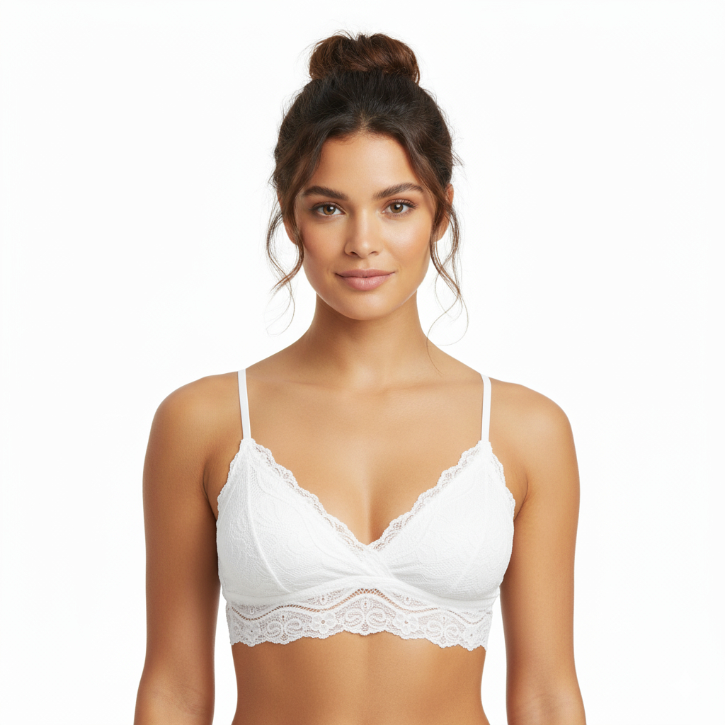 Sutiã Renda Floral com Bojo sem Aro Forrado Decote em V Alça Fina Regulável Feminino Edumara
