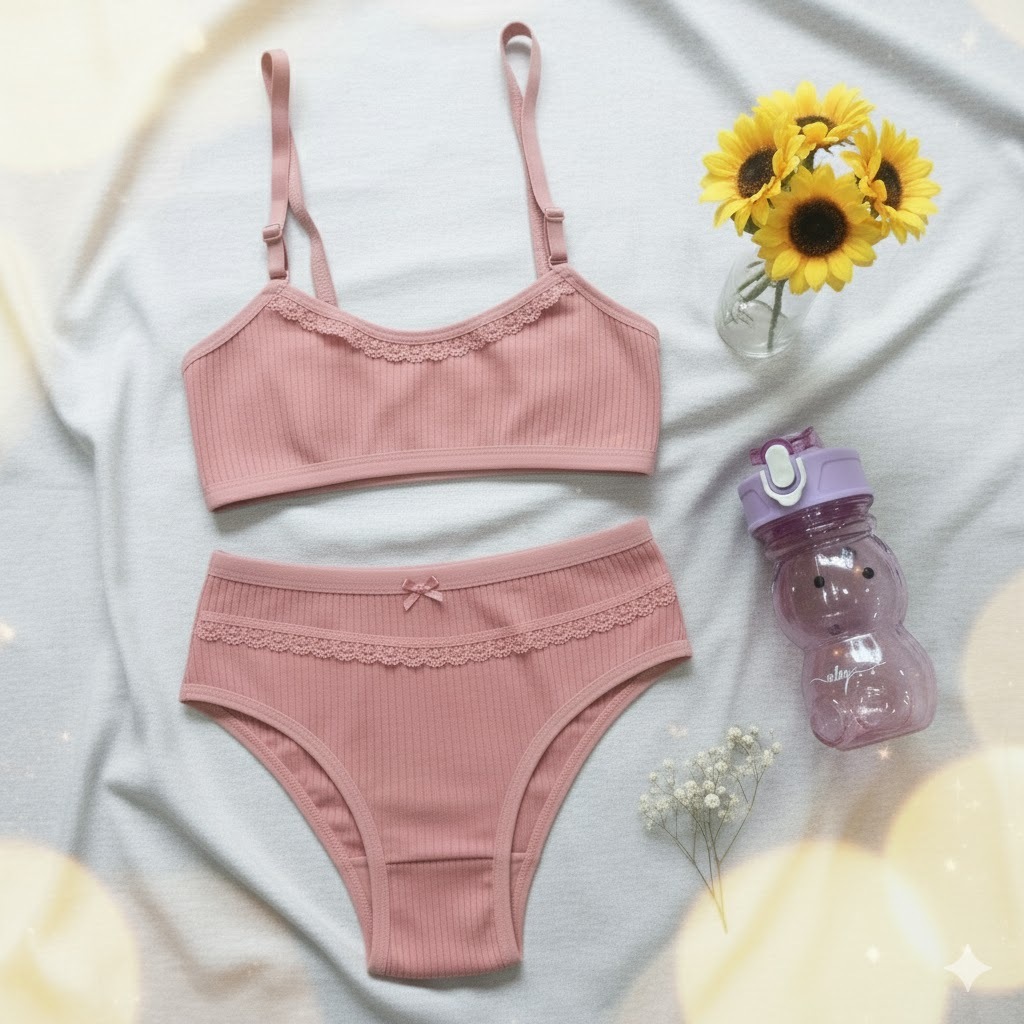 Kit 1 à 5 Conjunto Infantil Canelado Top e Calcinha com Forro em Algodão Confortável Edumara