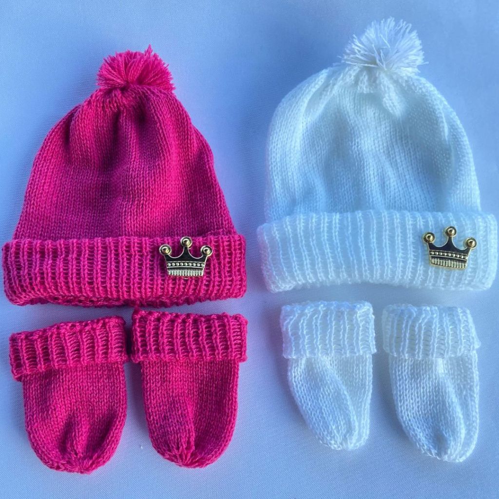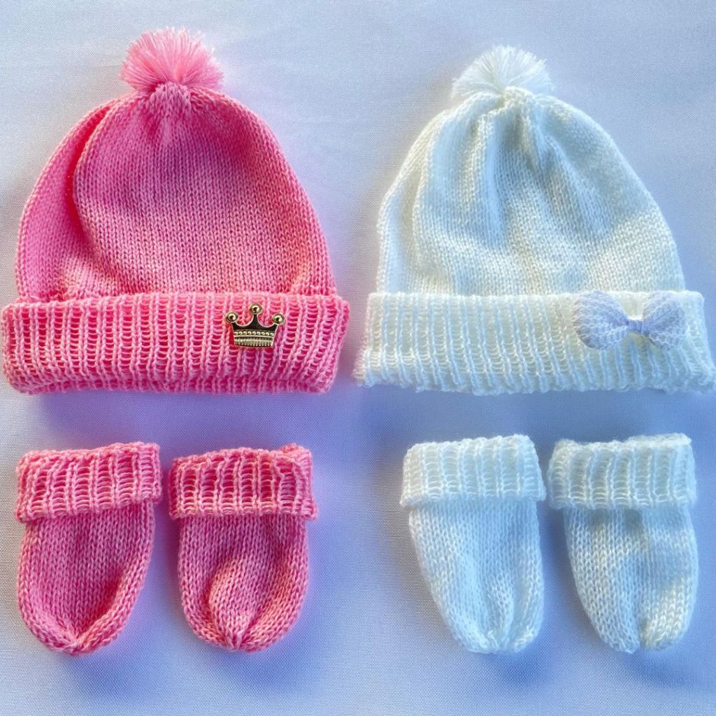 kit Touca e Luva Bebe Recém Nascido Saída De Maternidade Menino Menina Trico Feminina Masculina