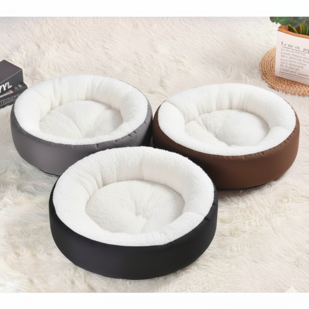 Caminha Redonda Pets Sherpa para Cães e Gatos Macia 50x50 cm Quente Confortável Cama Pet Inverno