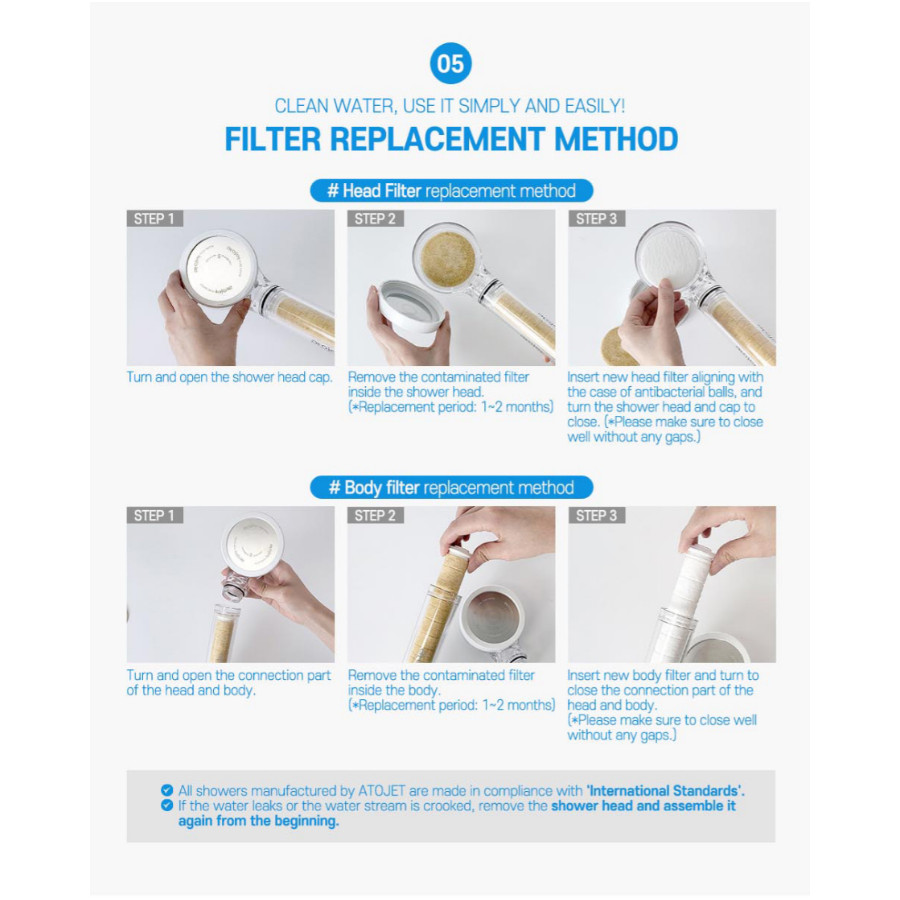 Chuveiro Atojet com filtro triplo, água limpa e pele saudável