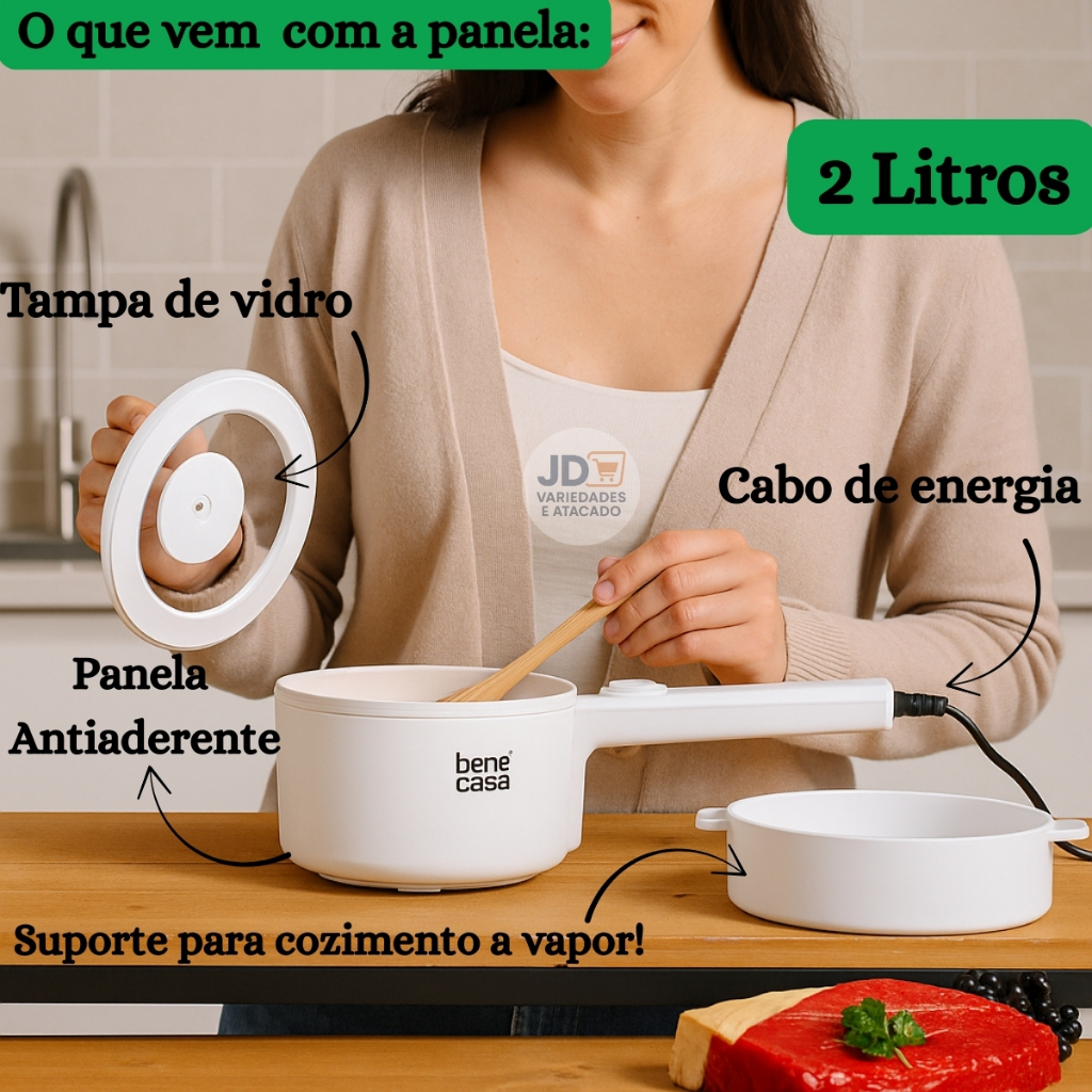 Panela Elétrica Multifuncional Antiaderente 2L Cozimento a Vapor 220V ou 127V