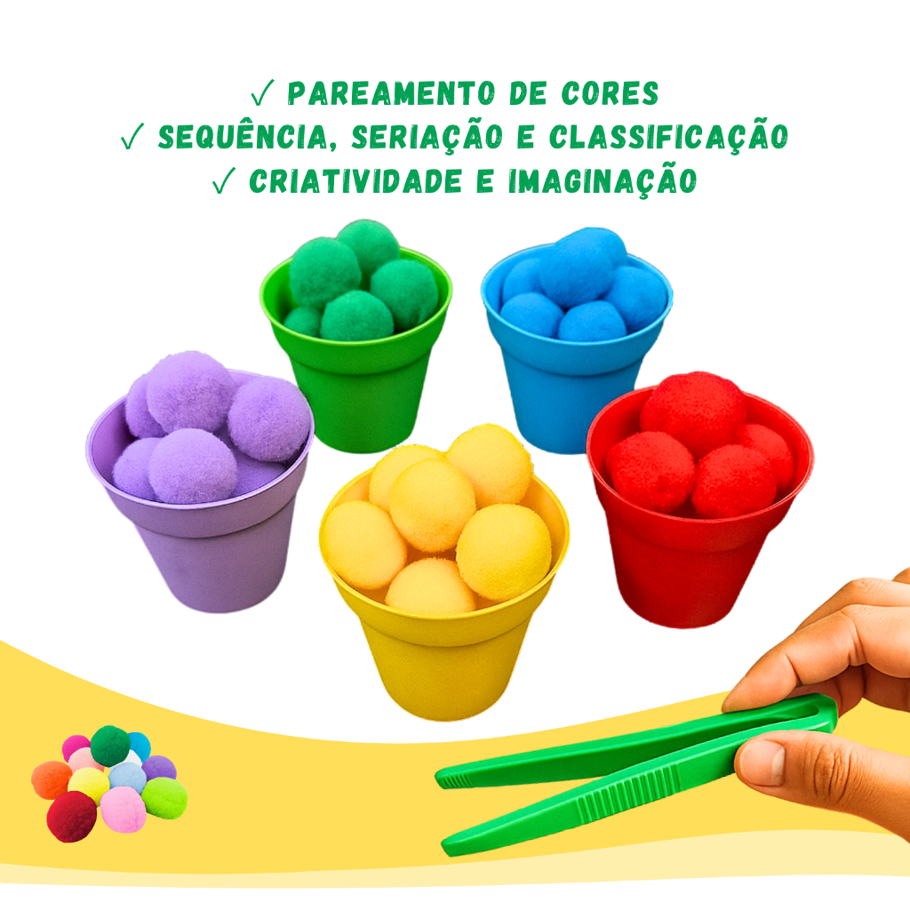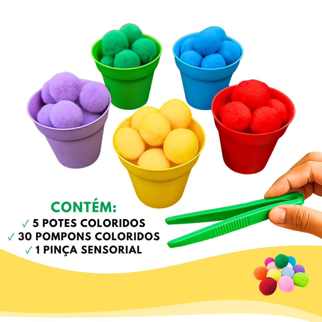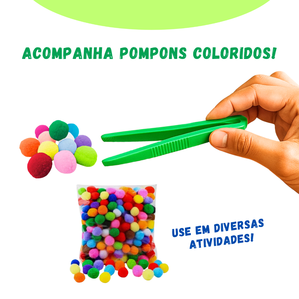Kit Montessori Coordenação Motora Jogo Potes Pompons Pinça Educativo Sensorial Pedagógico Colorido