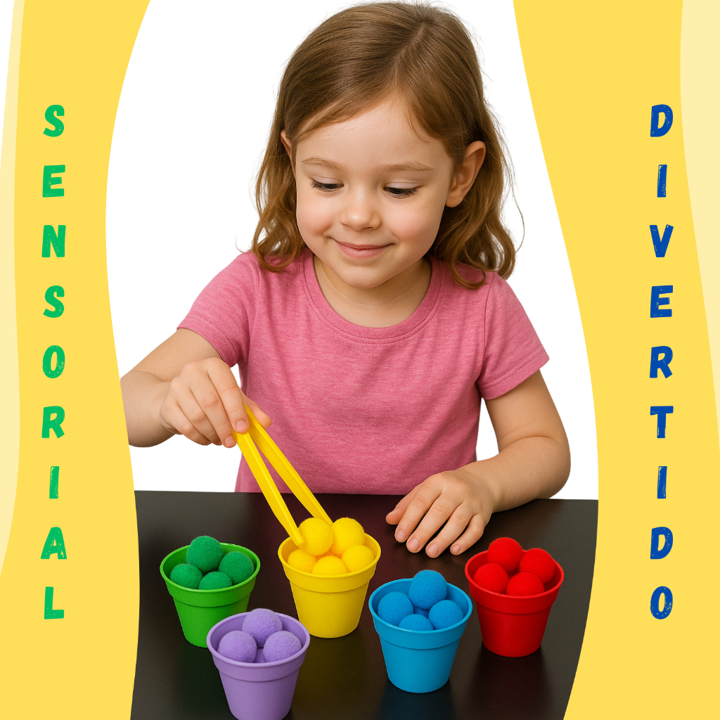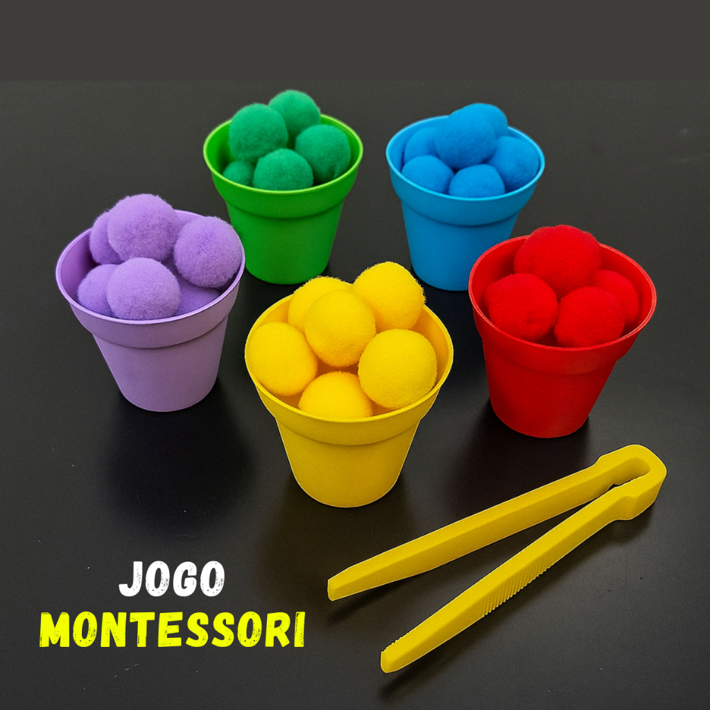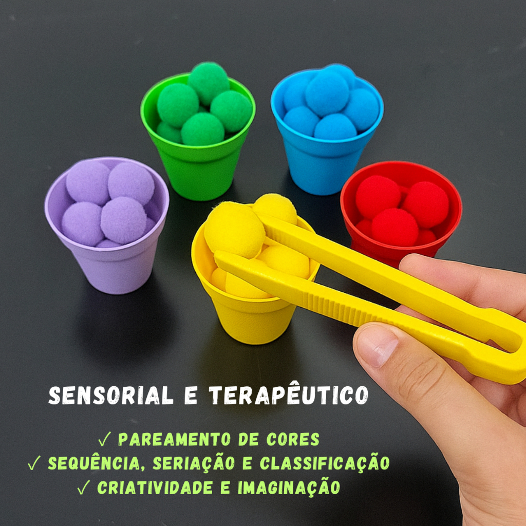 Kit Montessori Coordenação Motora Jogo Potes Pompons Pinça Educativo Sensorial Pedagógico Colorido