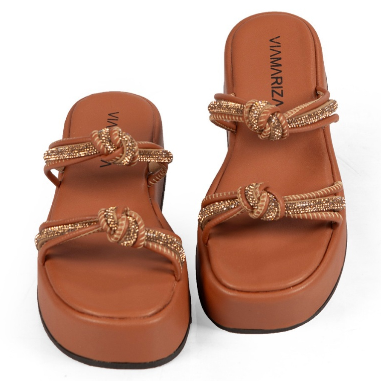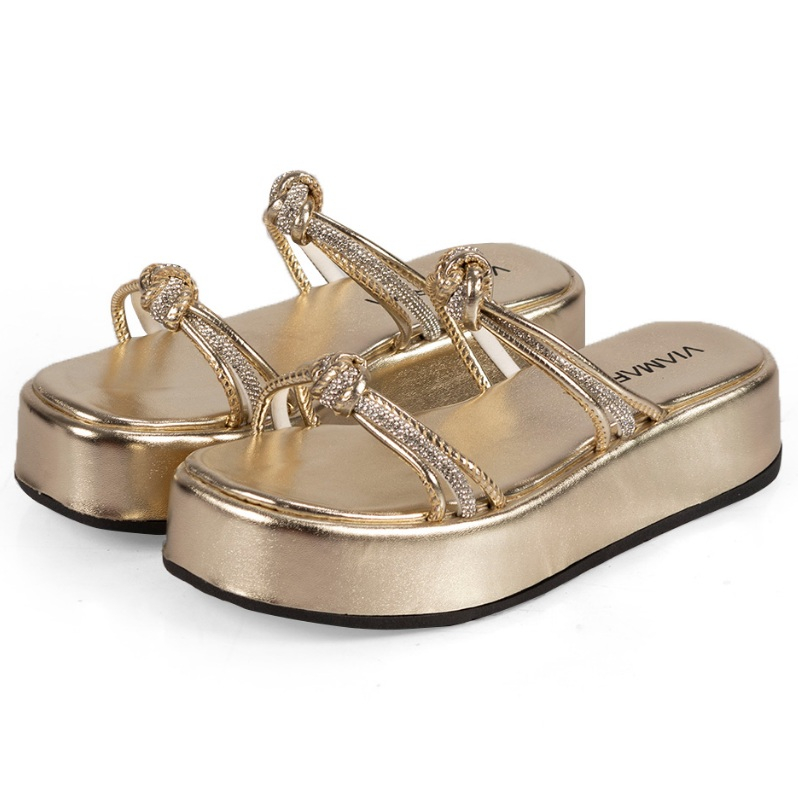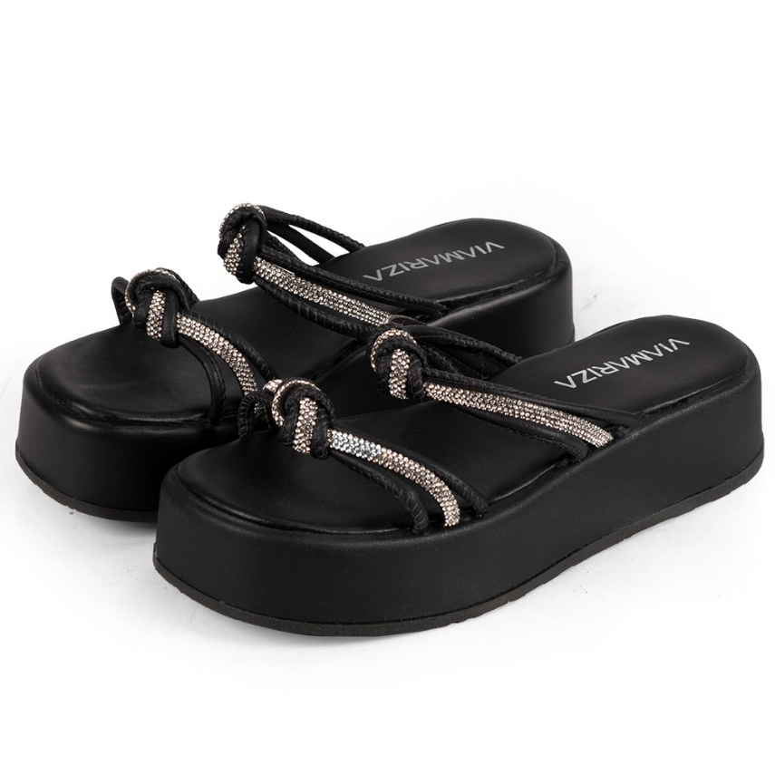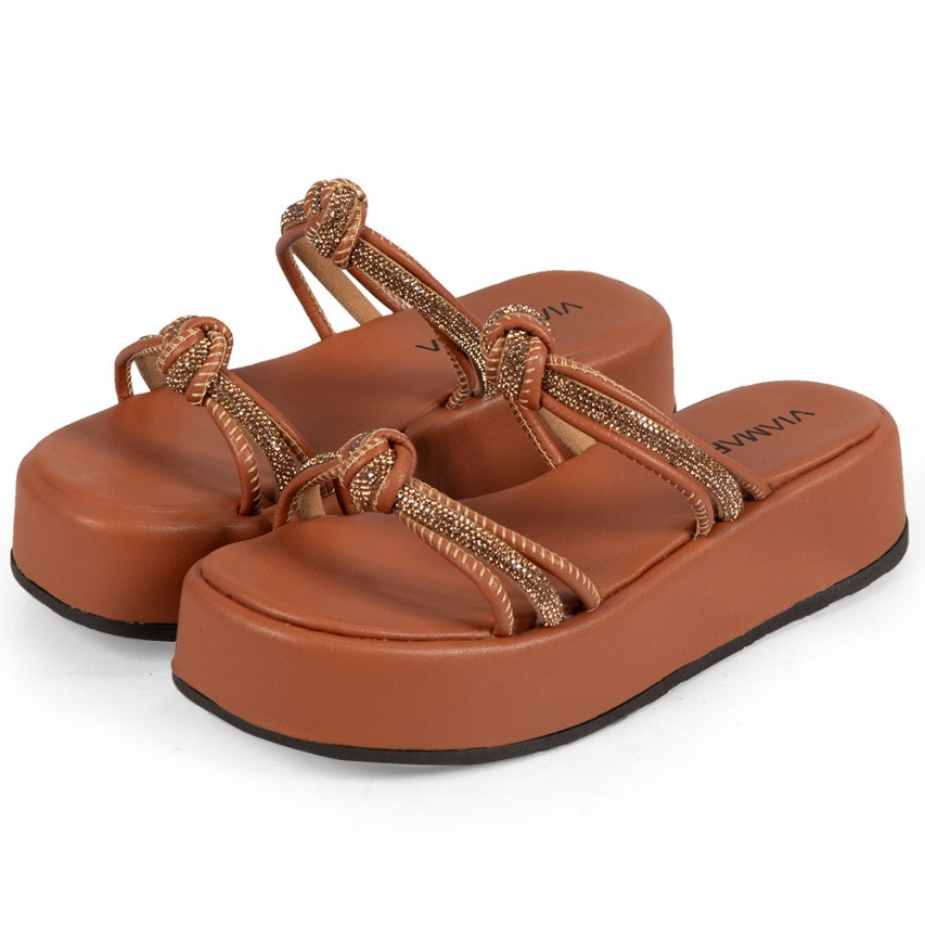 Sandália Feminina Tiras de Strass Brilho com Nó Plataforma FlatForm Luxo Confortável Blogueira Flat