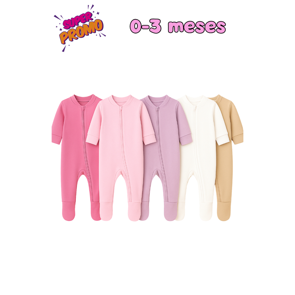 Kit 5 Macacões Menina Liso Bebê Algodão Zíper Vira Pé Inverno Infantil Macio Macacão