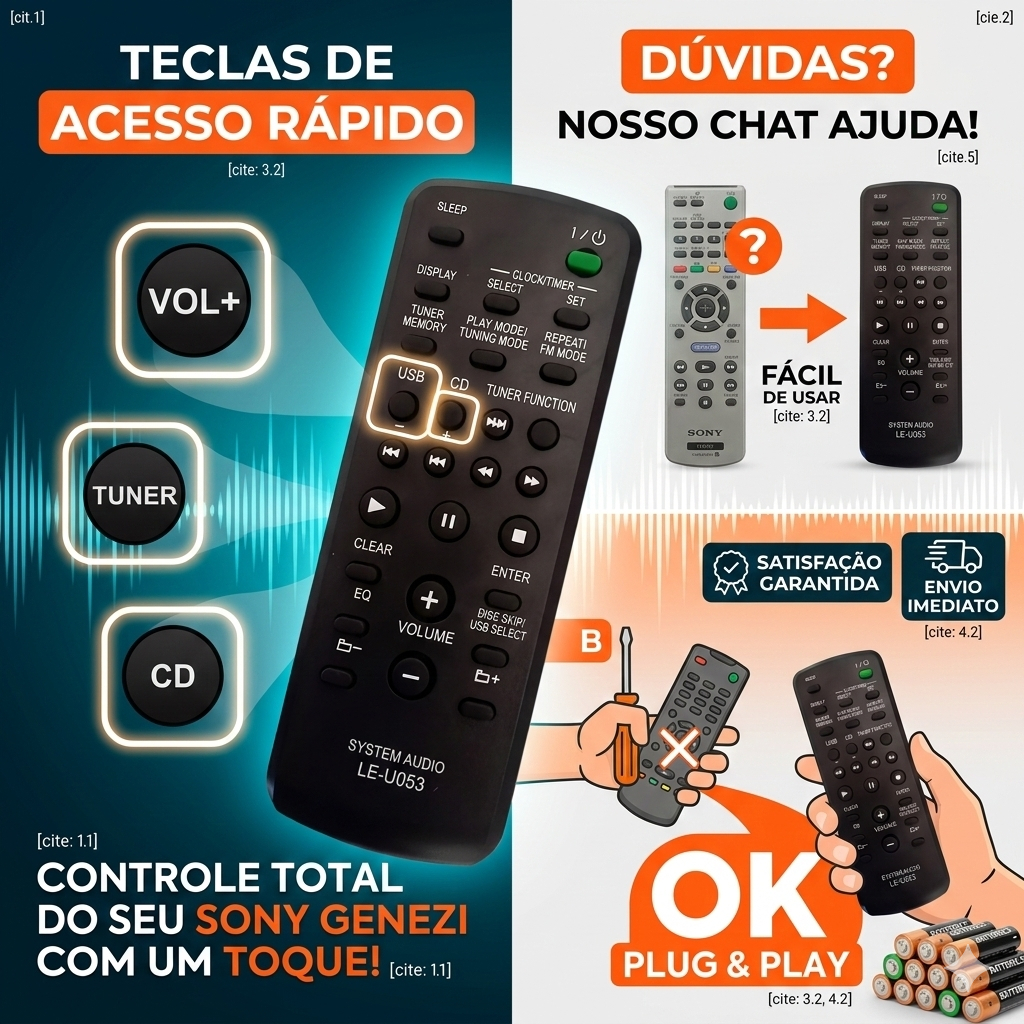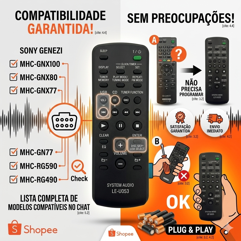 Controle Remoto Para Mini System Sony Genezi Varios Modelos.