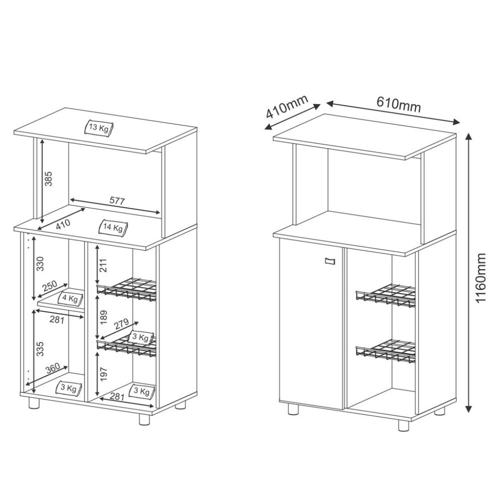 Armário de Cozinha Fruteira 1 Porta Bf3207 Branco - Tecno Mobili