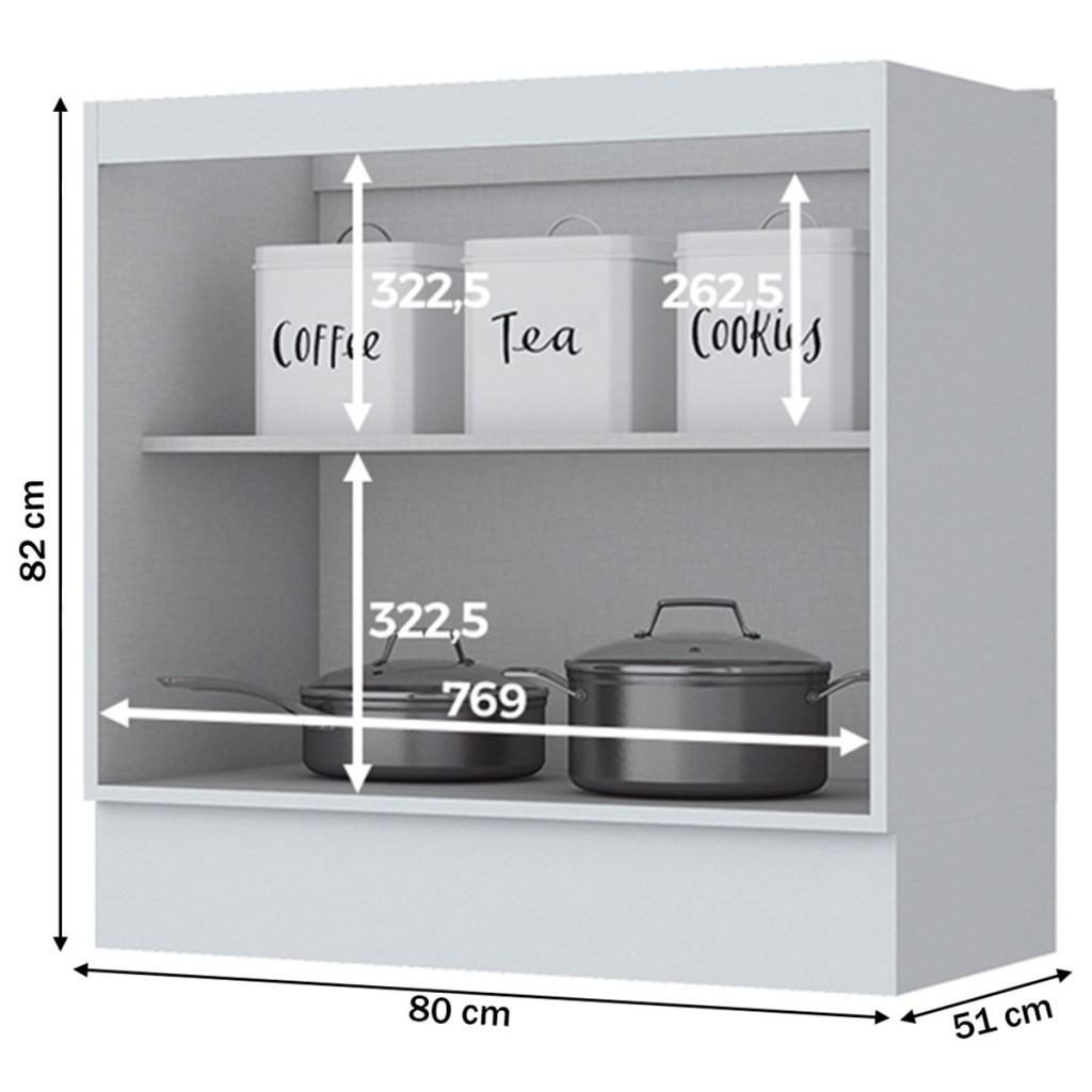 Armário de Cozinha Nova York 2 Portas 1 Prateleira Branco Hp - Henn