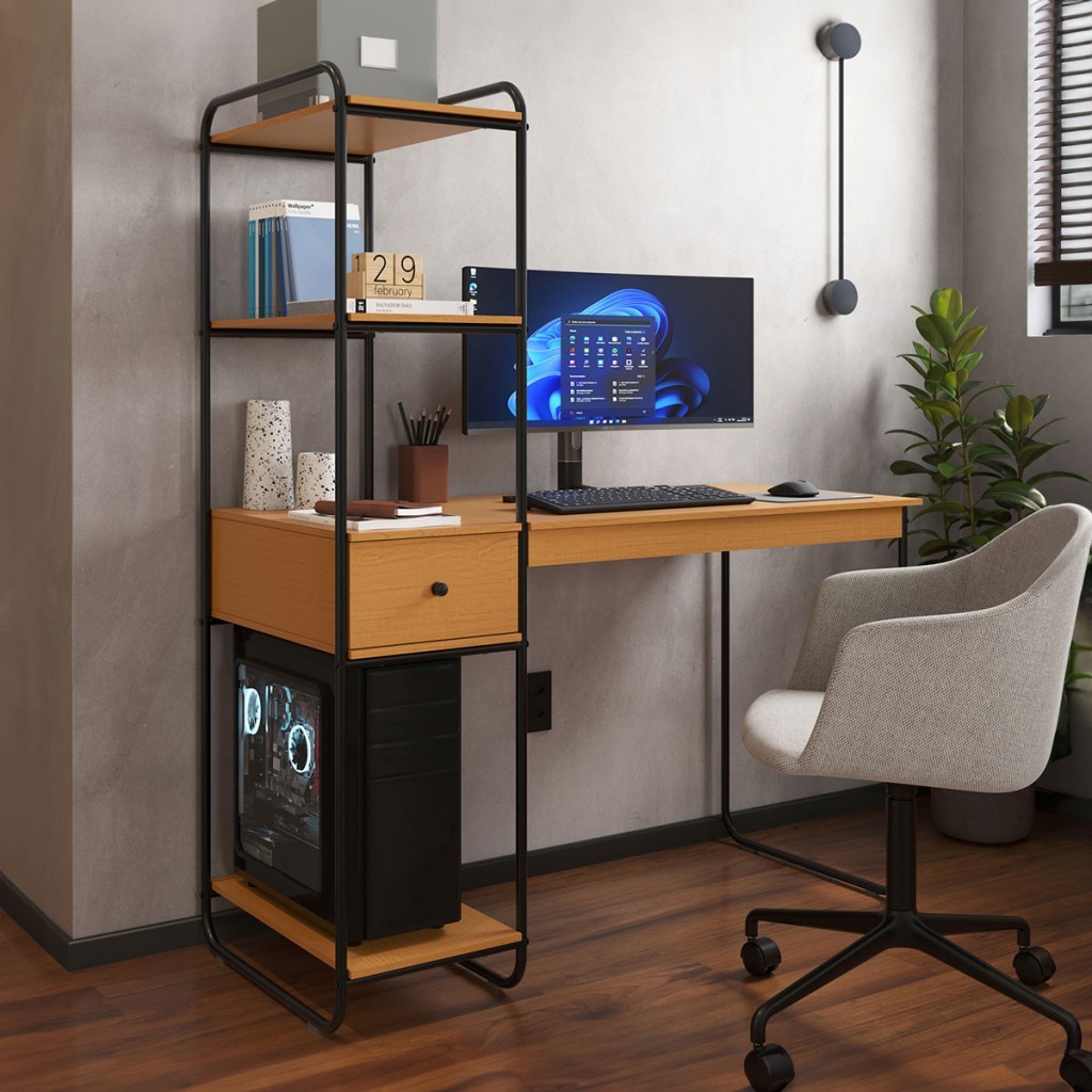 Mesa Escrivaninha Criare 1 Gaveta 3 Prateleiras