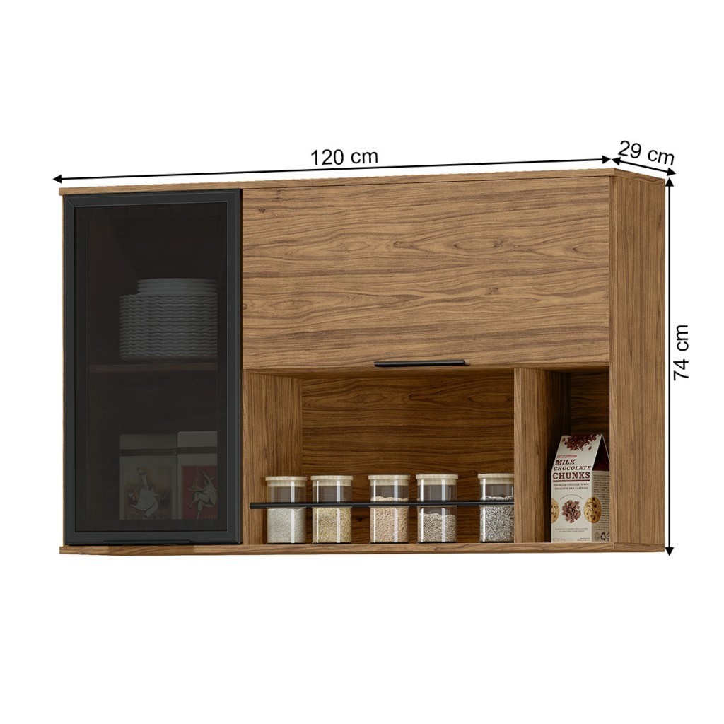 Armário Aéreo Cozinha Toscana 100% Mdf 2 Portas com Vidro Freijó - Mx Móveis