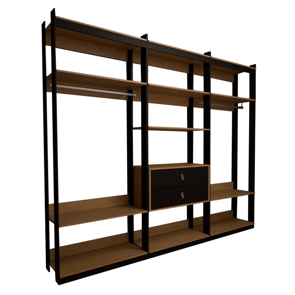 Closet Industrial Marseille 2 Gavetas 8 Prateleiras 2 Cabideiros Black/Brise - Panorama Móveis