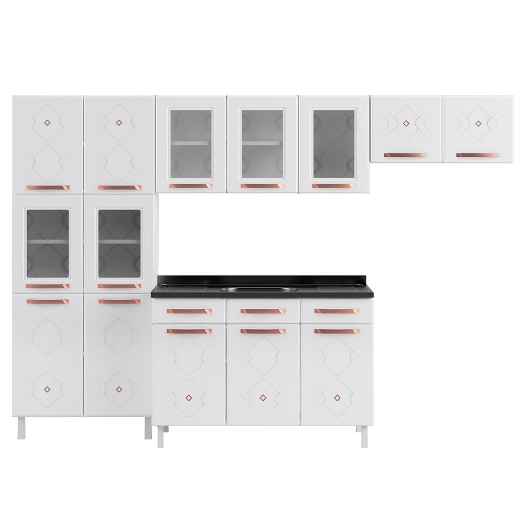 Armário de Cozinha Compacta de Aço Completa Mirage New 14 Portas 2 Gavetas Branco 815484 - Pnr Móveis