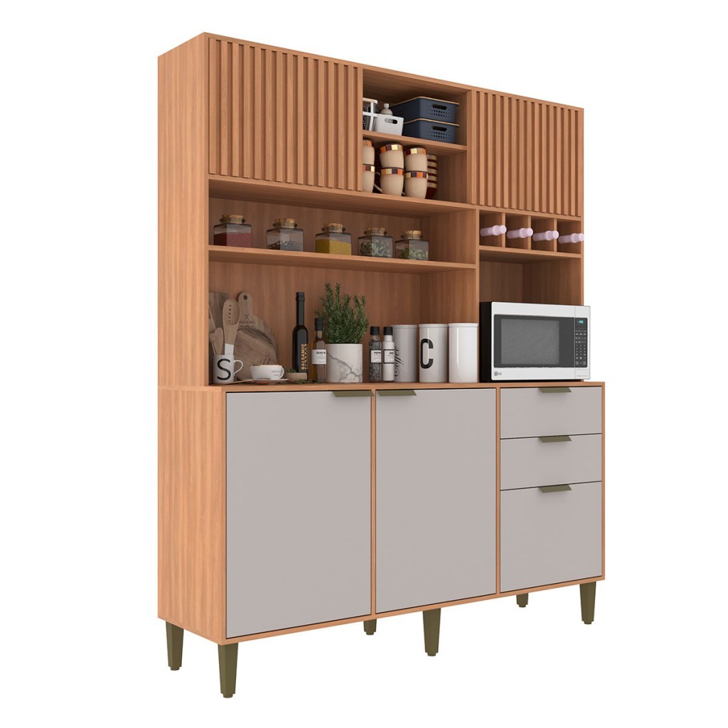 Cozinha Compacta Melissa 5 Portas 2 Gavetas Ripado Freijó/Fumê - Jcarvalho